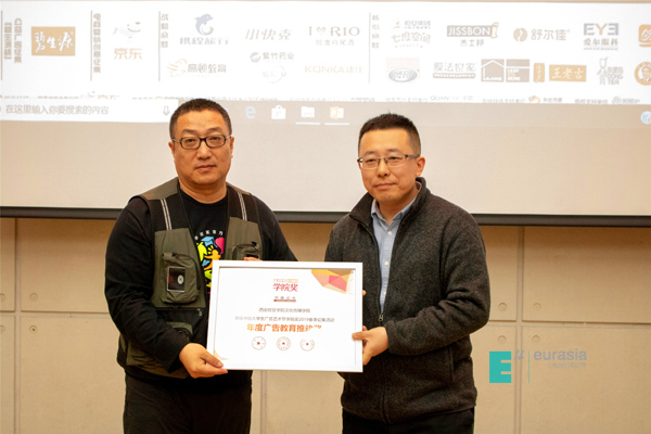随后,由承办单位广告人文化集团副总经理马雪松老师为文化传媒学院颁发“年度广告教育推动奖”证书,并鼓励我院继续努力推动大赛发展。