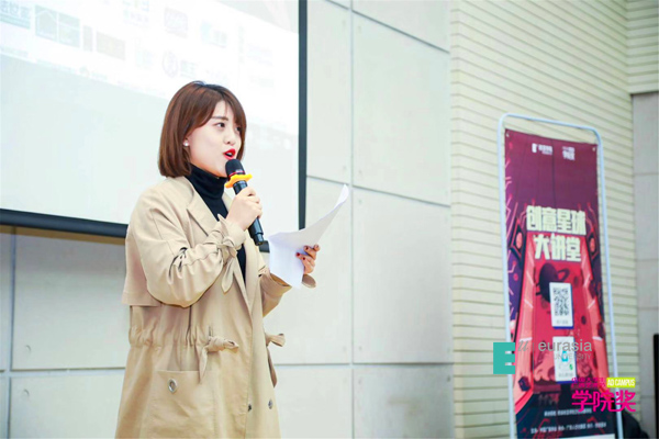 广告人文化集团市场总监孙明晖女士为在场同学们介绍学院奖的奖项设置,讲解参赛策略,并带来“涂缓缓”首届“关爱女生”公益行动宣传,引起了现场同学们浓厚的兴趣。她表示:“此公益宣传是为了让健康更科学。”
