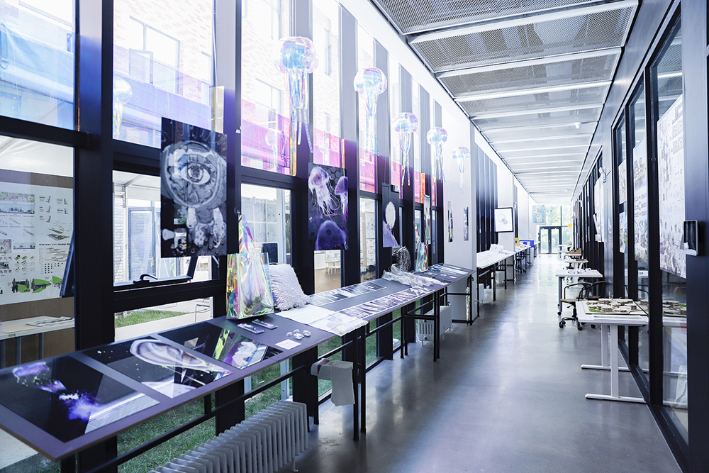 今年我参加欧亚艾德艺术设计学院的毕业展,发现教学楼的公共展厅,设计工坊的阶梯过道,校园各处的空地角落,都被同学们的作品一一填满。2019年,我曾带着30余位教师去英国的大学交流,那里的许多场景和这次的毕业展很像,通过这种自由的展出形式,同学们表达着自己的思想和主张,以作品传递自己内心的声音。