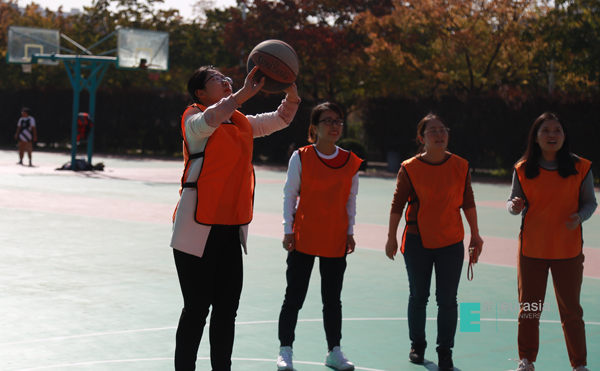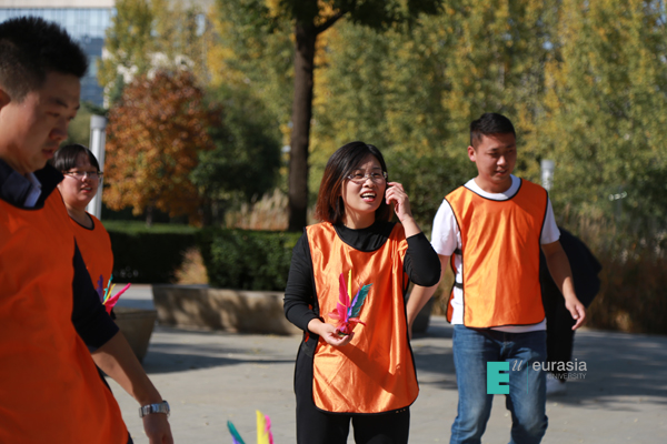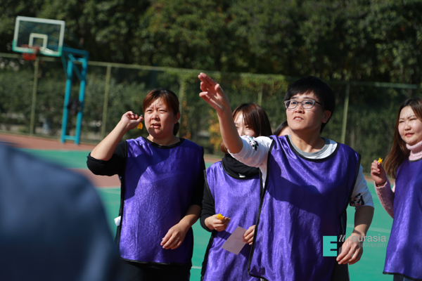 第二关:取水游戏。有两个容量不等的水壶以及足量的水,通过两个水壶取出指定体积的水;取水成功后踢毽子,每人都连续踢中5次即为闯关成功!这一关对于男老师来说,太有挑战性,小小的毽子调皮地乱飞,男老师笨拙可爱的踢法惹得全场在紧张比赛的同时又忍俊不禁。