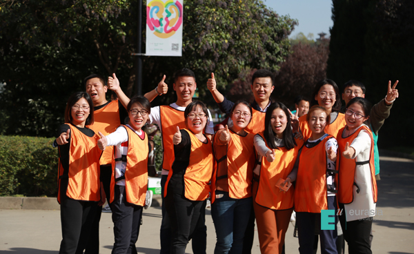 第五关:鼓动人心。大家迸住呼吸、轻轻拽动绳索,只求在那一刻“同心同德”,控制好那个小小的球,让它乖乖地在鼓上连续跳跃10下。鼓的一上一下,都牵动着大家的眼和心。这一刻,我们紧密在一起!