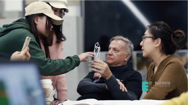 Tony Brown在作为学院国际学术顾问期间,一直关注并指导学院在学科发展上的未来洞察,曾多次与分院展开深层次、跨领域的互动与合作:出席并担任beat3652019年「University-maker——设计领域的教育行动」论坛重要嘉宾、与当代艺术家隋建国在学院举办「雕塑的手和绘画机器人创造的神秘意外」双个展、带领艾德艺术设计学院跨领域实验班学生进行公共雕塑工作坊,并在此期间为欧亚学院校园创作、落成新的公共雕塑作品。