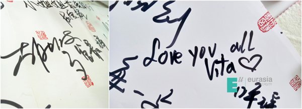 在为期四天的“蘇•思”展览中,受到了学院各位领导、老师多次的赞赏和鼓励,老师们表示文化传媒学院的学生就应该走进文化中调研学习,同时使用传媒方式传播、分享成果。分院各位老师还为文化产业管理1601班学生留下了寄语,外教vita教授观展之后,深受触动,作为曾经指导过我们的老师,她看到了我们的成长,还写下了留言,为我们提词:“love you all”。