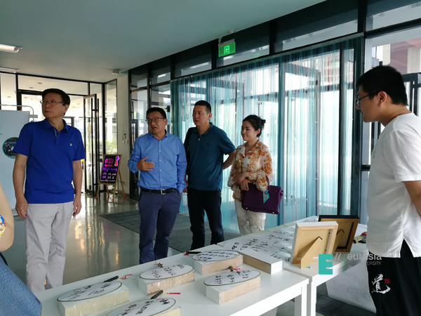 四天展期中,胡校长多次带嘉宾观看本次展览,还评价道:“这是他看到的文化传媒学院质量最高的展览”,并鼓励继续保持并发展下去,还为我们留了言。21日下午,胡院长陪同教育厅领导与嘉宾参观本次“蘇•思”展览,在详细了解展览具体内容后,他们给了同学们很多赞许和鼓励,使同学们深受鼓舞,相信以后能做的更好。