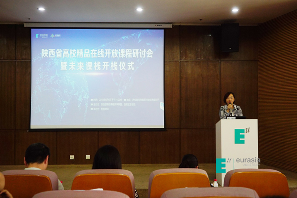 (图六)教务处副处长张娜汇报欧亚学院在线课程建设及应用分享