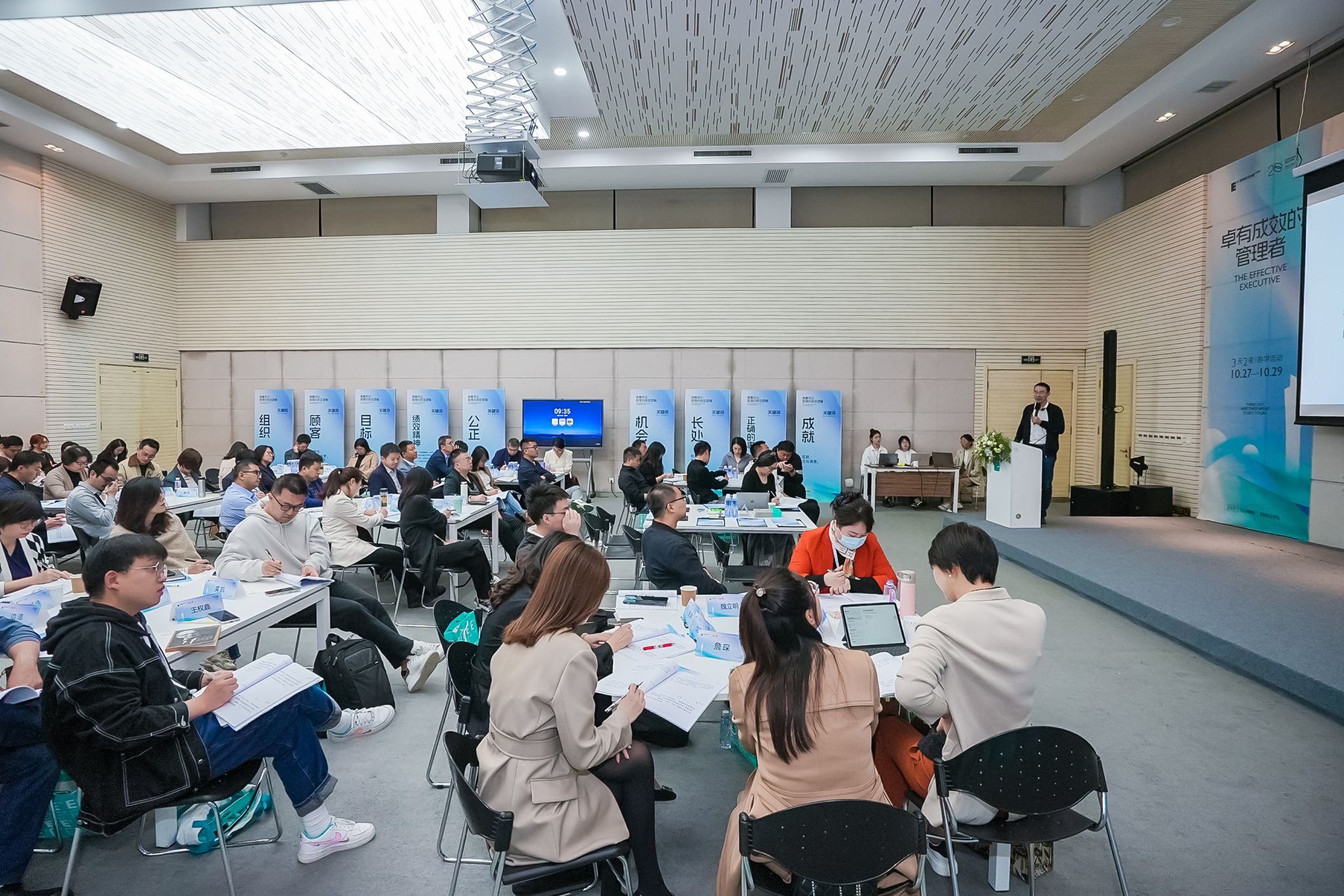 活动特邀“12个德鲁客”创始人、《德鲁克论管理》译者、拥有22年实践与咨询经验的康至军老师为学员作为期两天的《卓有成效的管理者》主题分享。管理就要卓有成效,卓有成效是可以学习的吗?答案是肯定的。康至军围绕“目标管理”与“自我控制”,带领学员回归管理的底层逻辑,由浅入深逐步领会德鲁克先生管理思想精髓——“修己,立人,兴业,济天下”,关注业绩、团队与自我的全面发展。