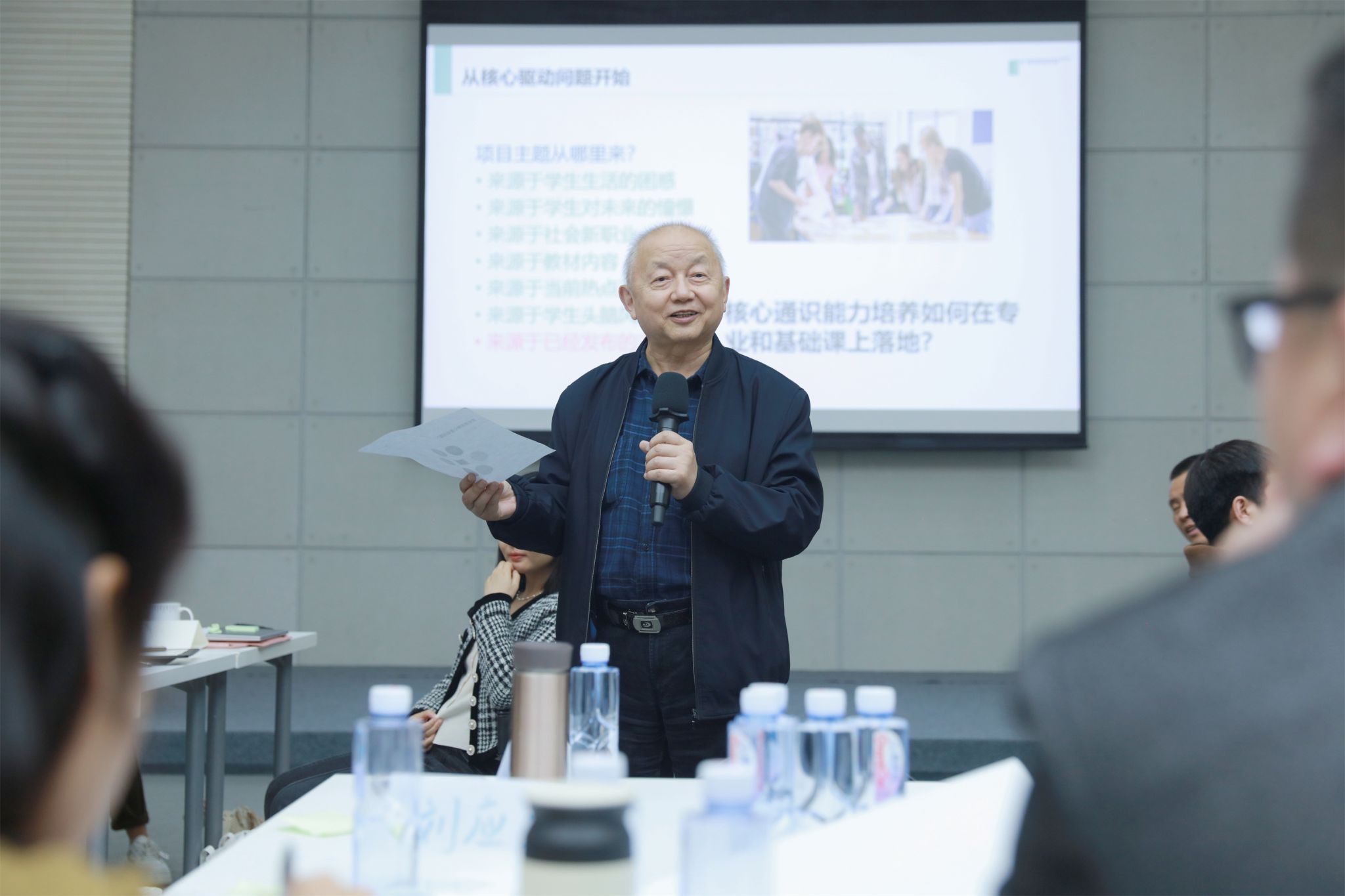 谢小庆教授和吴妍副教授对各小组的项目式教学方案进行了评议,分析每个小组所确定的核心驱动问题能否使核心通识能力培养在专业和基础课程中有效落地。现场的演练加深了大家对项目式教学的理解,全面认识了项目式教学模式。
