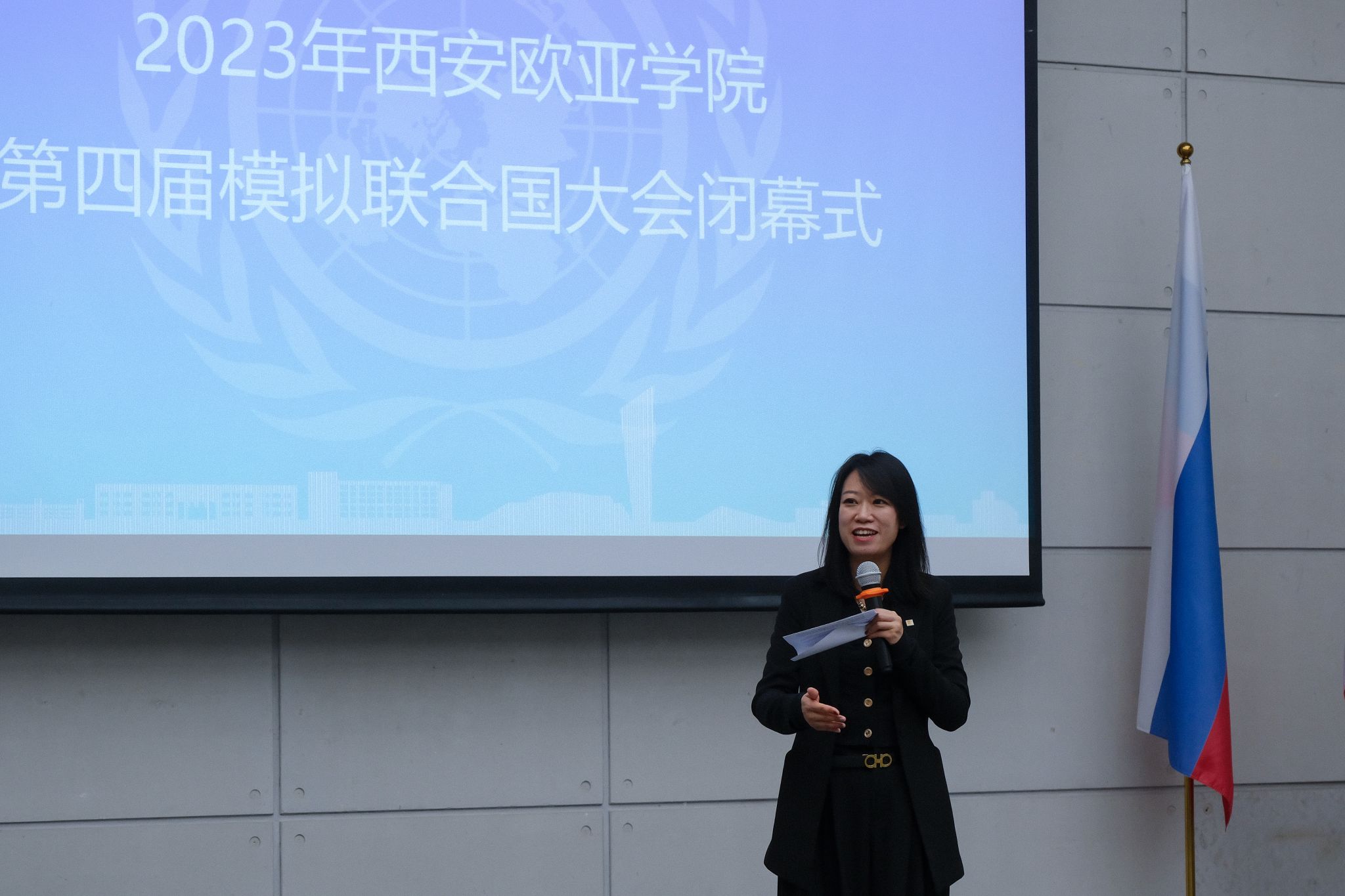 学生发展处处长助理李嘉瑜在致辞中提到,据美国哈佛大学的调查表明,课堂外的学习活动特别是在宿舍以及课外活动中发生的学习行为,对学生来讲至关重要,所有对学生产生深远影响的重要的具体事件有五分之四发生在课堂外。模拟联合国大会作为国际青年社区的品牌活动,也是学校在地国际化的重要活动之一。通过国际化氛围的营造、有益的环节设置帮助同学们更直观的了解国际规则、社交仪礼,有效推动学生个体的国际化发展。