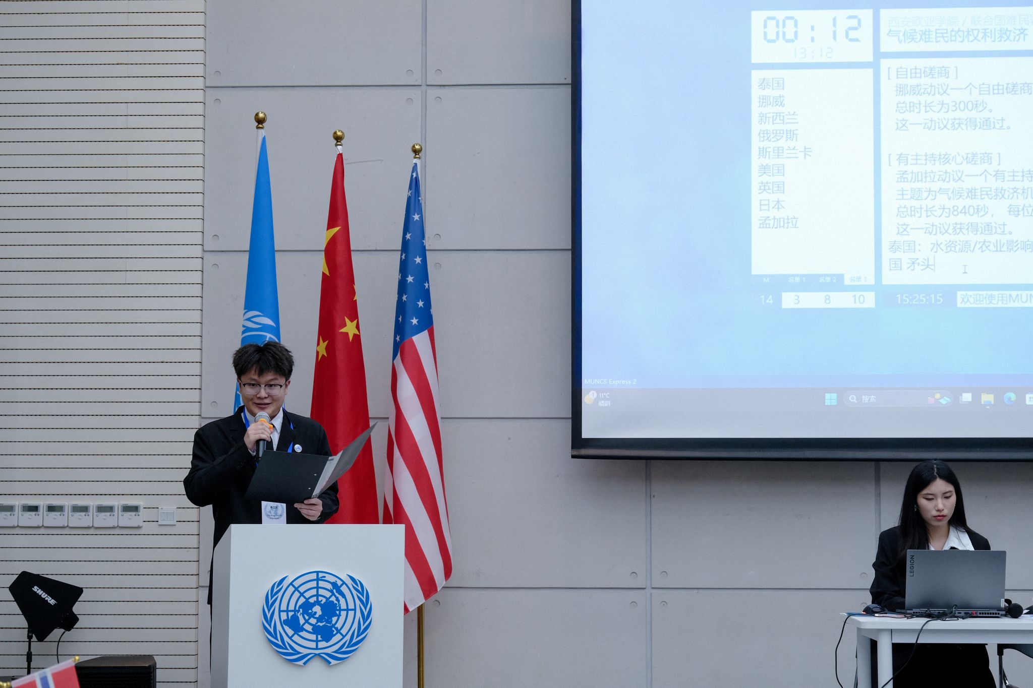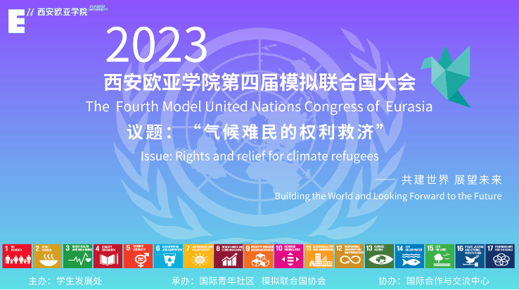 本次模拟联合国大会对标联合国的17个可持续发展目标,结合青年社区共享价值观,以“共建世界,展望未来”为主题,就“气候难民的权利救助”为议题,以学术辩论的形式展开。本次会议共有14个国家,24名代表出席,在会议主席团的主持下,各个“国家代表”通过演讲来阐述观点,通过辩论、磋商、游说等方式进行沟通交流,解决冲突。在会场上,通过写作决议草案和投票表决来推进国际问题的解决,为全球性问题提出新的思考和更多的可能。