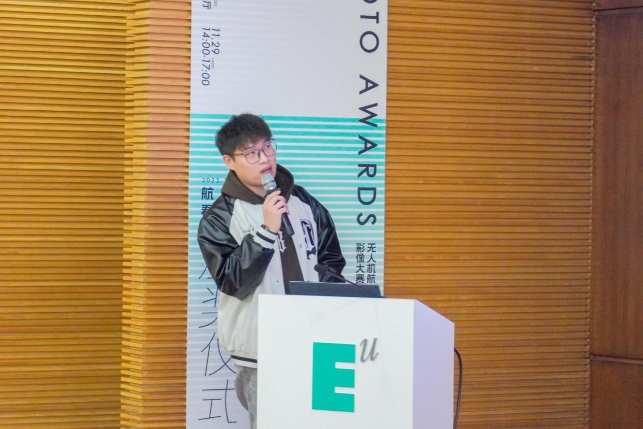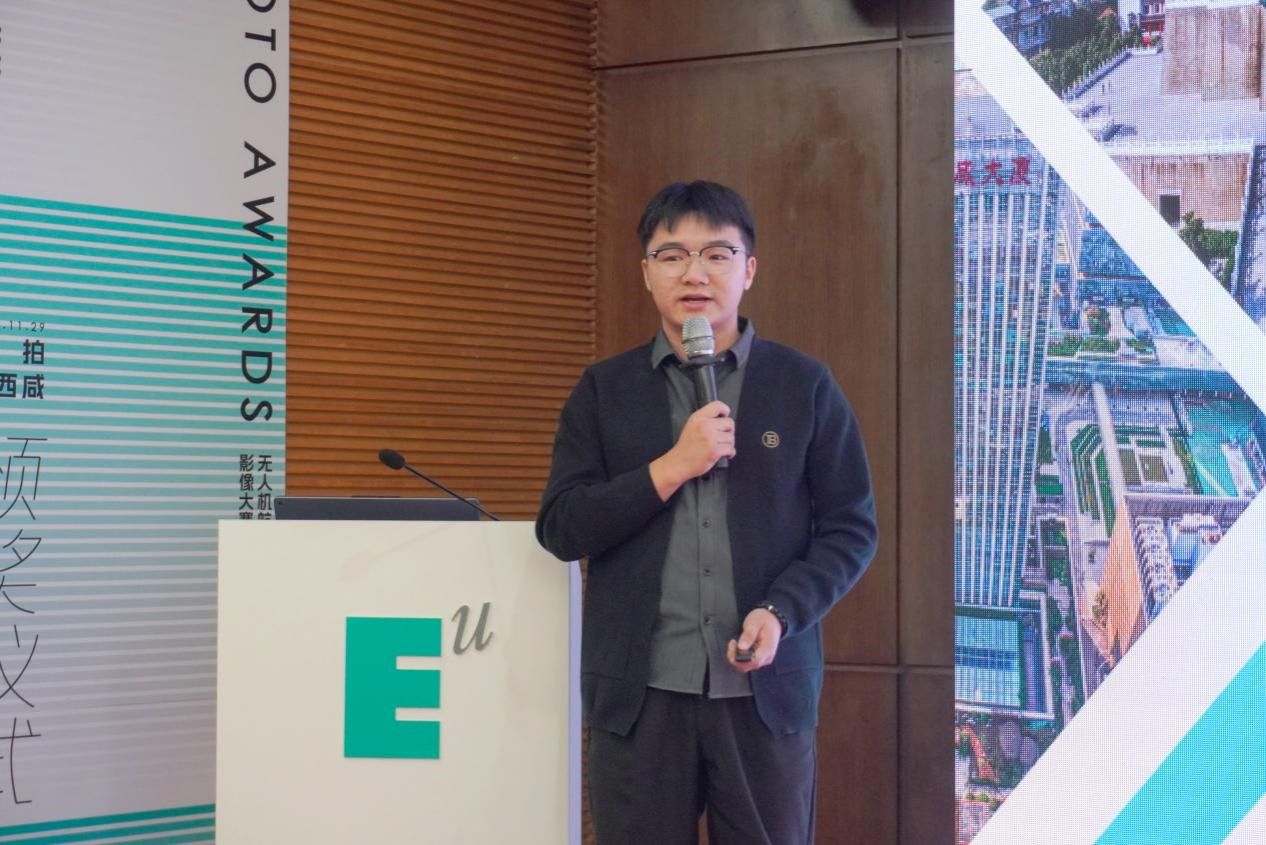 最佳创新奖获得者刘睿以“保持热爱 共赴山海”为主题,分享了他的拍摄经验以及航拍实用的小技巧。此外,现场还颁发出了二等奖3个、三等奖5个、最佳创新奖、最佳运镜奖、最佳摄影奖、最佳调色奖等11个奖项。