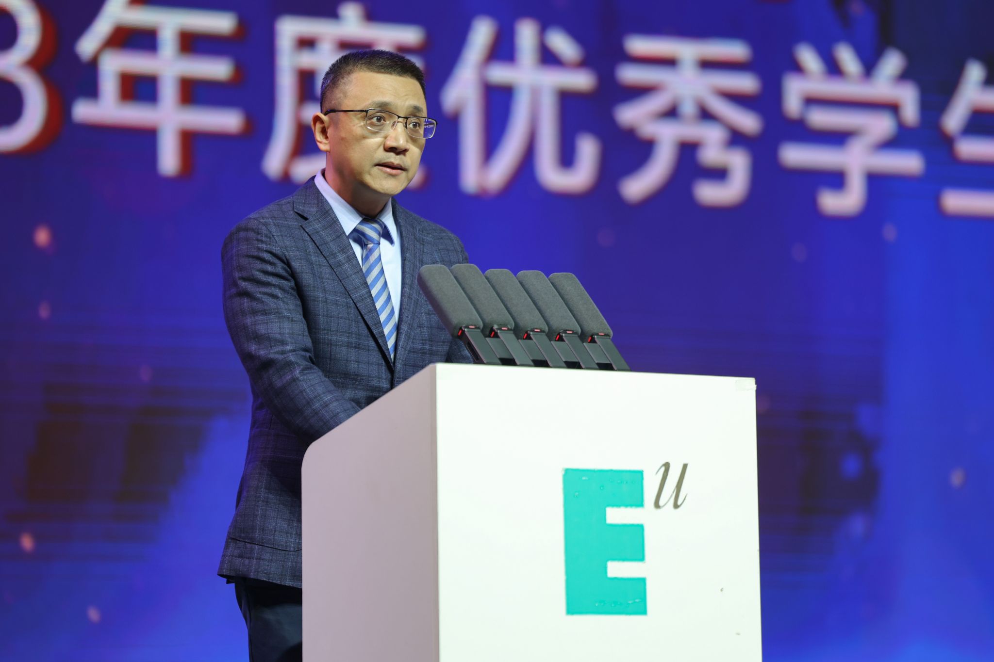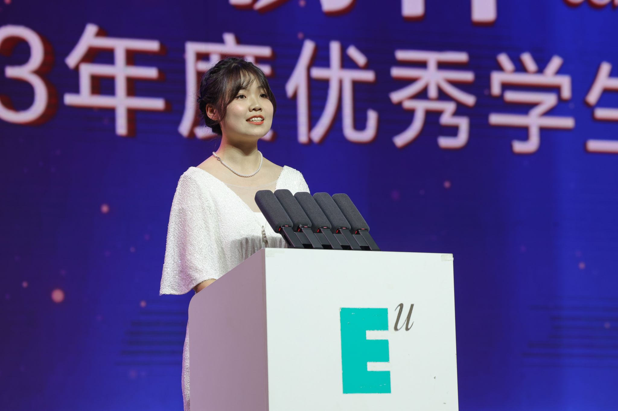 2023年度国家励志奖学金获得者、人文教育学院小学教育专业2021级学生郭昱莹代表获奖学生发言。她分享了自己在欧亚三年的学习成长故事:从课堂内外的项目式学习和自主探索、担任学生干部的经历中,获得综合素养能力的锻炼和提升;在参加“三创”挑战赛中收获新的知识和学术经验。未来,她希望自己带着欧亚的DNA,向着更高的山峰和更远的路继续出发。