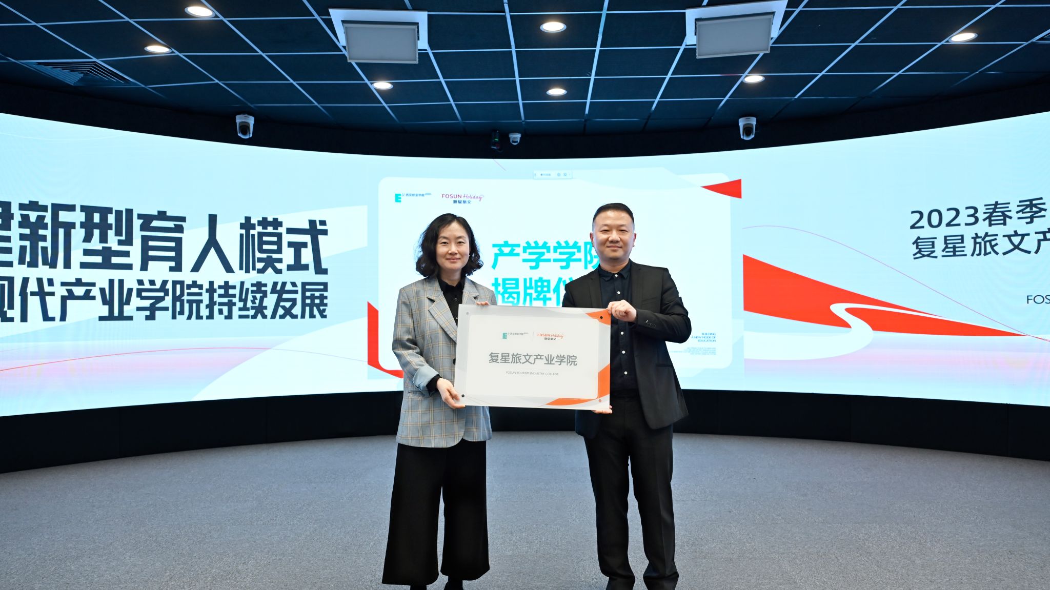 5月11日,工商管理学院与上海复星旅文集团携手共建的复星旅文产业学院正式揭牌。工商管理学院以旅游管理、会展经济与管理和体育经济与管理专业为主体,与复星旅文集团共同提升学科专业建设质量、创新人才培养模式与实践教学环境、协同打造应用型师资队伍与高质量实习就业赋能平台、积极服务地方社会经济发展,为应用型本科人才培养搭建广阔平台,为文体旅会展产业发展持续助力。