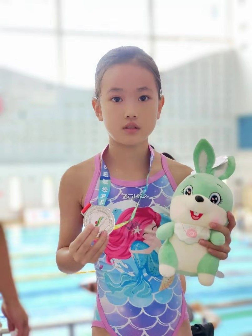 (图一)陶陶获得陕西省体育俱乐部游泳联赛100米蛙泳银牌