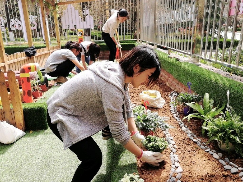 2018年,李戈在学校创办了“植悟社”社团,这个以植物为中心的社团吸引了不少学生的参与。同年,她带领社团学生为西安一所幼儿园营造一座小花园。花园建成前,孩子们上课的地点只有教室,绘画作品也多是空洞、同质化的;花园建成后,上课的地点多了鸟语花香,孩子们的作品也有了“灵魂”,甚至有孩子直接在画上写上“开心”两个字。2019年,该项目入选首届上海社区花园与社区设计国际研讨会案例集成功案例,团队也成为西安高校中唯一受邀团队,站在国际舞台上分享经验与故事。