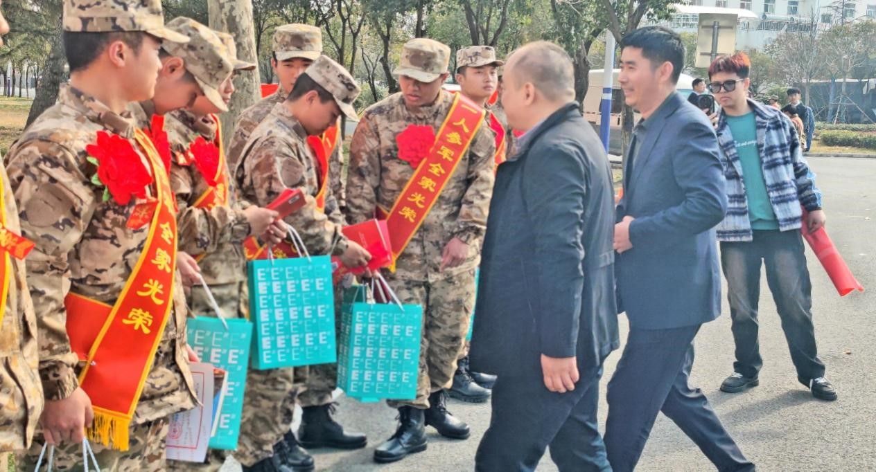 (图二)向即将奔赴军营的同学学校发放纪念品