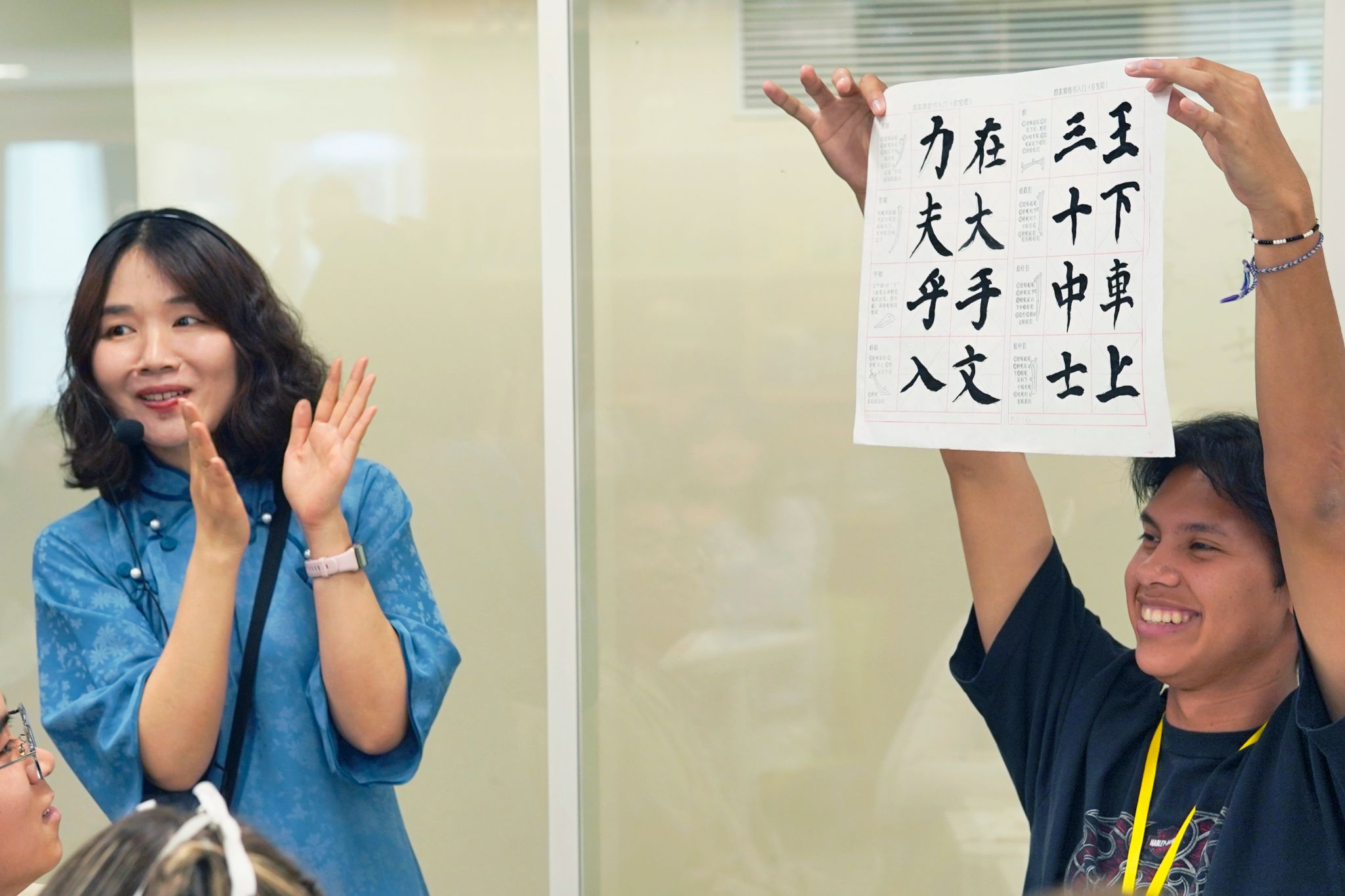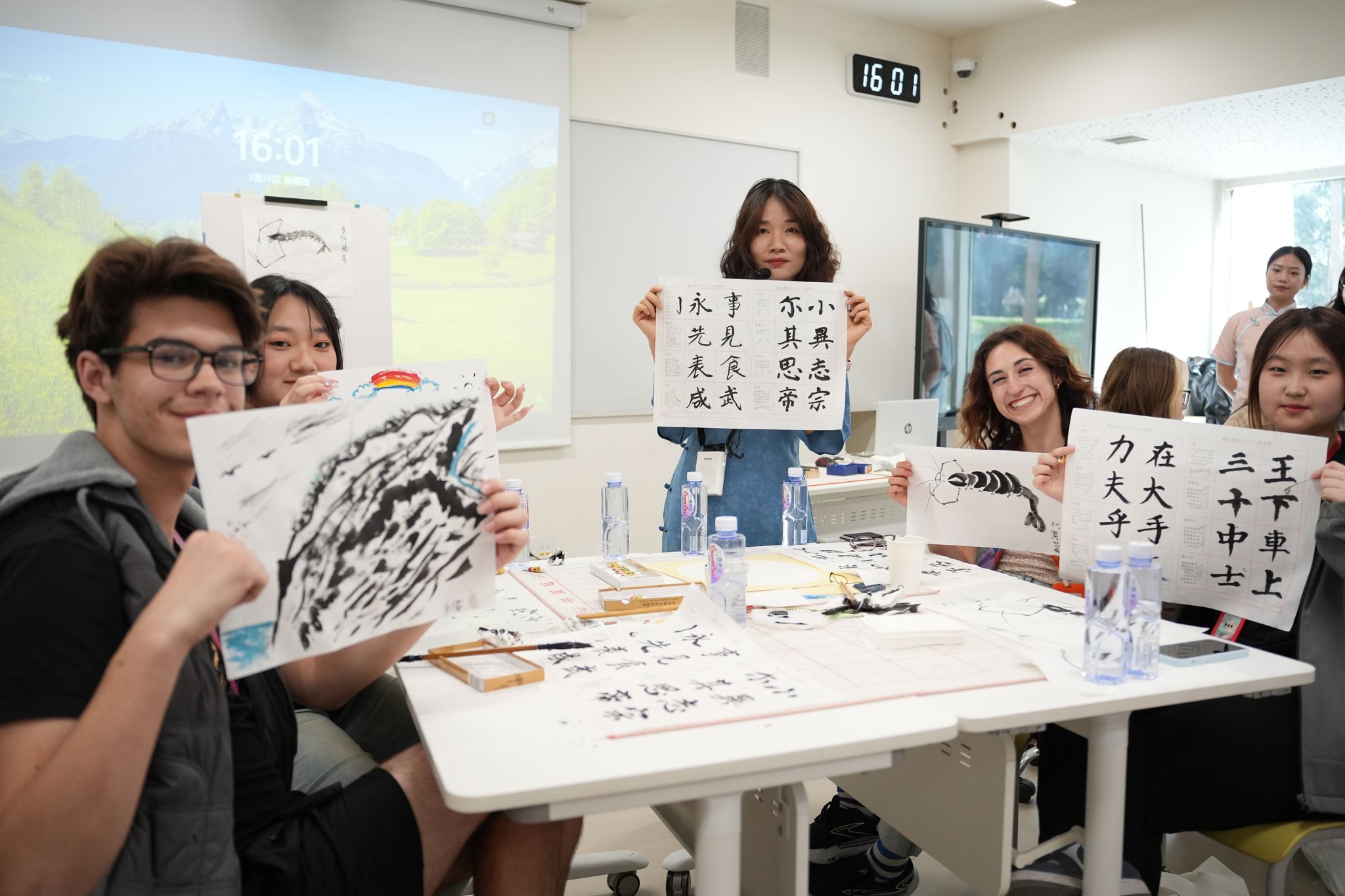 活动第一站,美国中学生们来到人文教育学院《古今长安》双语课程,薛雯老师娓娓道来中国书法和中国画的精髓,学生们仿佛置身于古都长安的历史长廊中,沉浸式感受着中国文化的魅力。