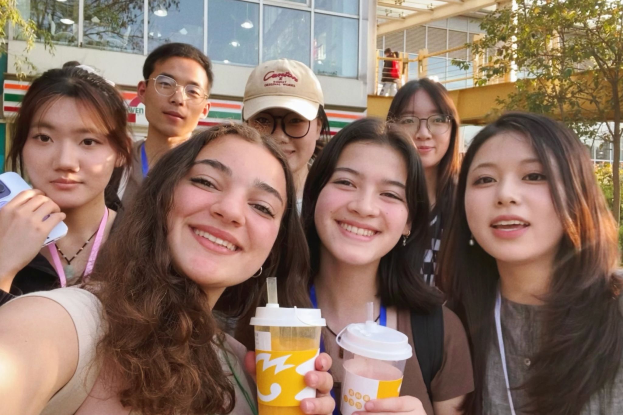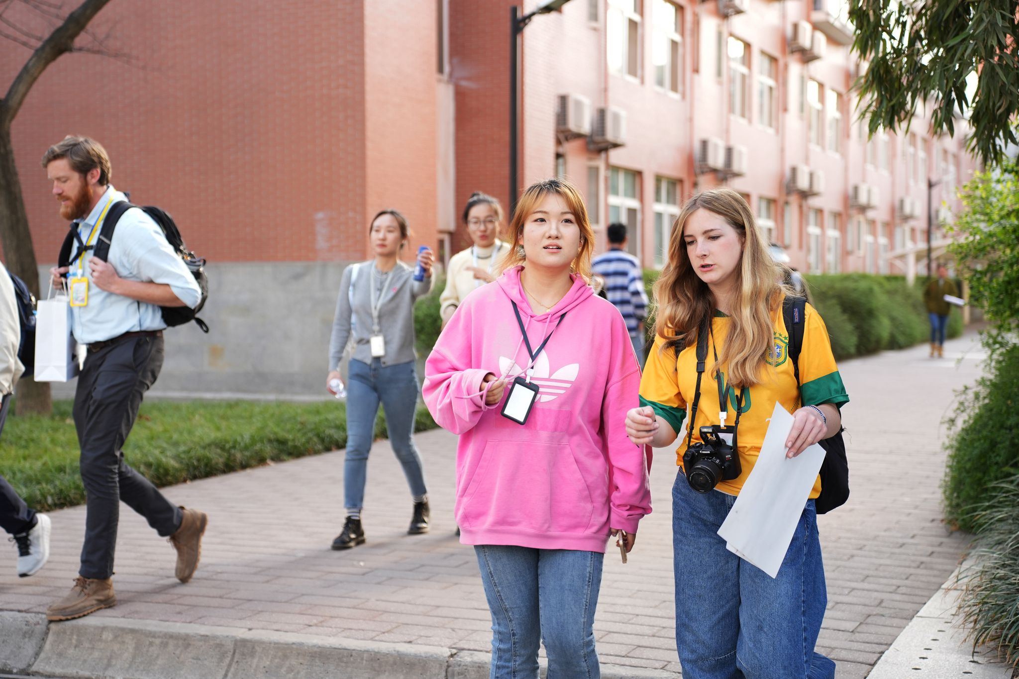 在南区学生客厅、图书馆和设计博物馆等地,江翡向学生们介绍了欧亚校园的建筑风格、教学设施和文化活动,带大家体验欧亚国际化教育的魅力和“以学生为中心”的开放学习氛围。美国中学生和人文教育学院的志愿者同学们结伴而行,彼此分享着各自的学习经历和校园体验,互相了解对方的文化背景和生活习惯。