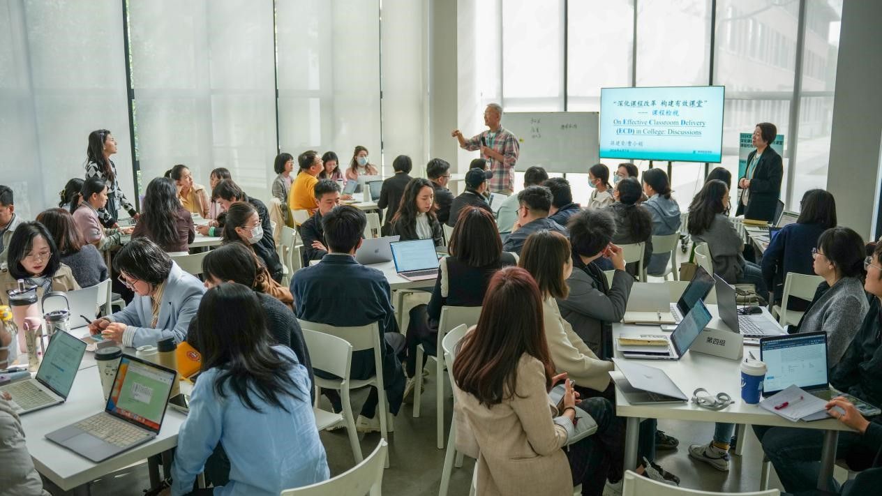 他强调,课程检视是确保教学质量的关键环节,教师们应从课程目标、教学内容、教学方法等方面进行全面审视。他从质量保障是高等院校人才培养与教学质量保障的核心切入,讲述大学课堂教学的专业组成、大学课堂教学的职业组成,如何检视课堂选择讲授内容适宜的深度和广度,提出质量内涵、谁对质量保障负责,如何进行质量保障的问题让教师们进行探讨,以讨论式教学方式,再从课程大纲、人才培养计划、人才培养定位深刻剖析高校人才培养模式,多维度多体系分析课程教学质量。
