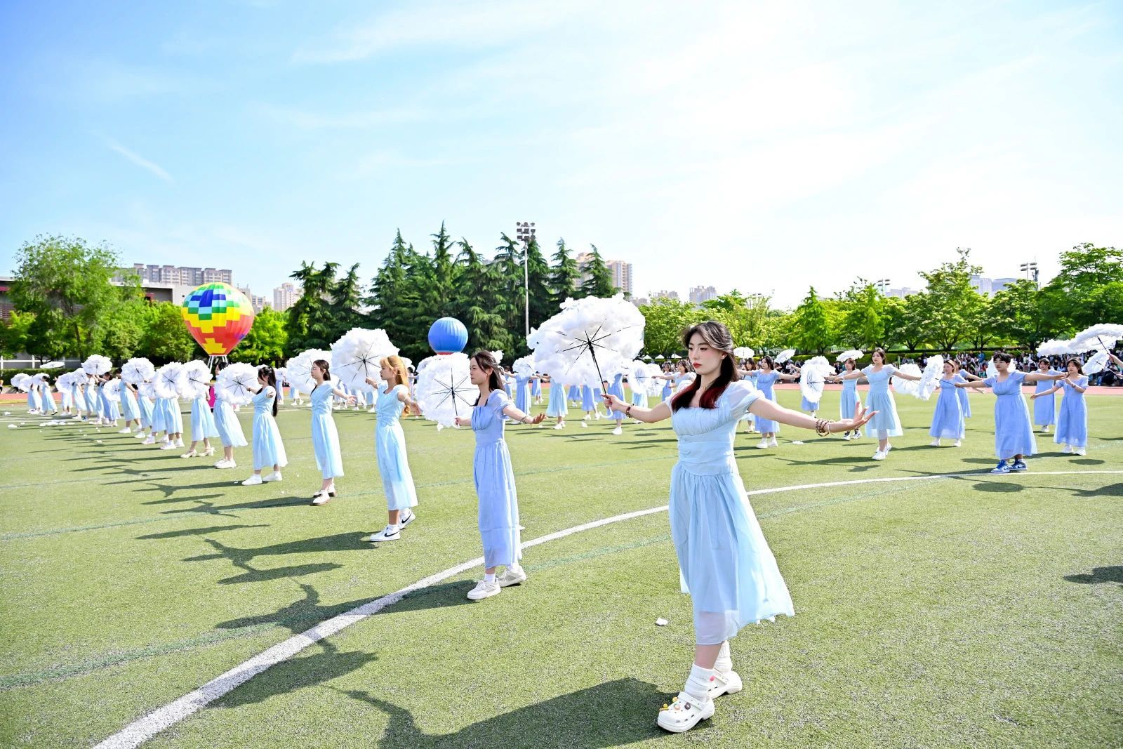 在今年的运动会开幕式上,古典舞者身着飘逸华服,翩然起舞,诉说风华;摇滚乐队旋律激越,点燃现场,让多巴胺在每个人心中无限渲染;热气球载着梦想与希望,在蓝天白云间描绘浪漫画卷。整个开幕式既古典又现代,多巴胺的热情与热气球的浪漫交织,演绎了一场视觉与听觉的盛宴。
