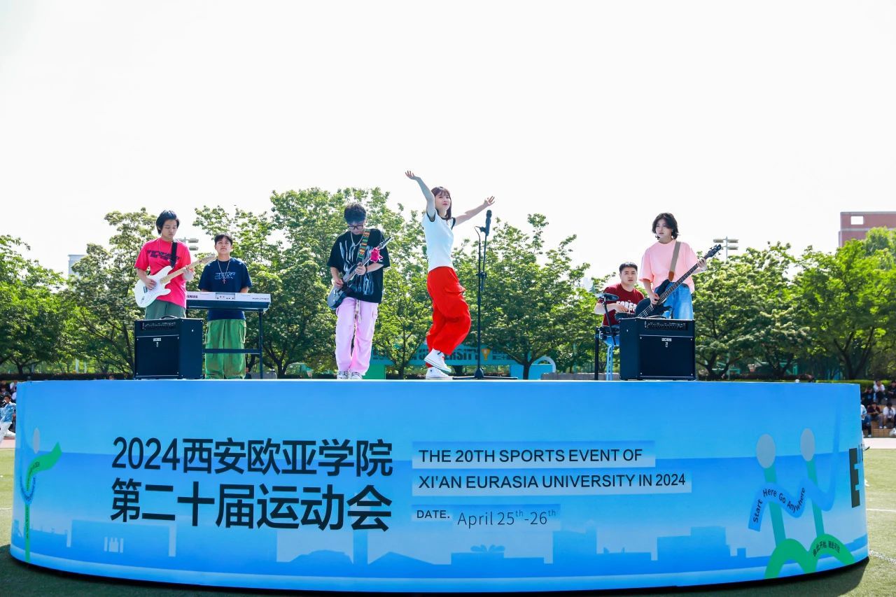 灵动的少女们,将手中的云朵伞,化作青春的画笔,以欧亚青年的锐气与担当为底色,与欧亚同行,绽放出耀眼的光,形成欧亚国际化教育的新图景。热辣滚烫乐队的歌曲,充满力量的演绎,点燃本次运动会开幕式,将其推向高潮。
