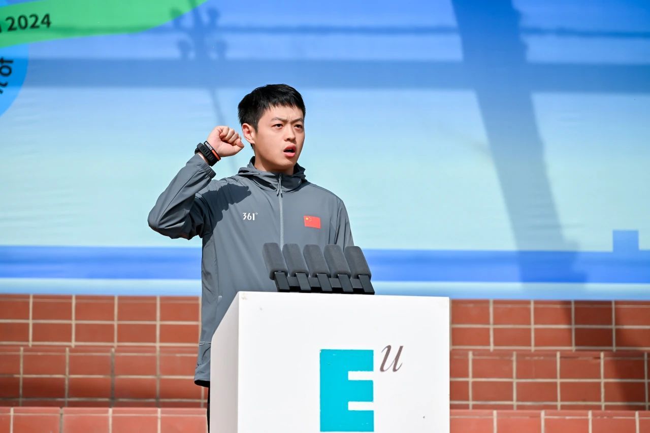Xdea青年社区会计学院的董心仪同学、通识教育学院体育中心强能老师分别上台代表运动员、裁判员宣誓。