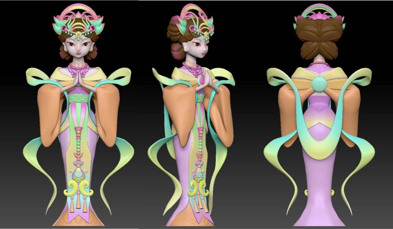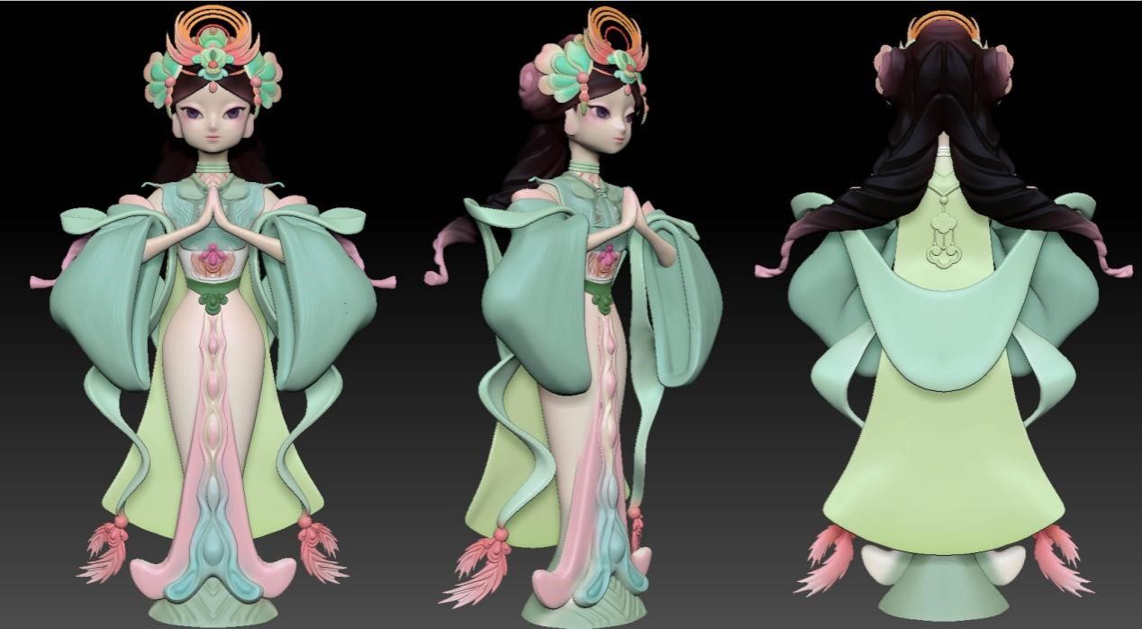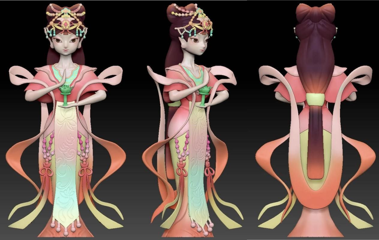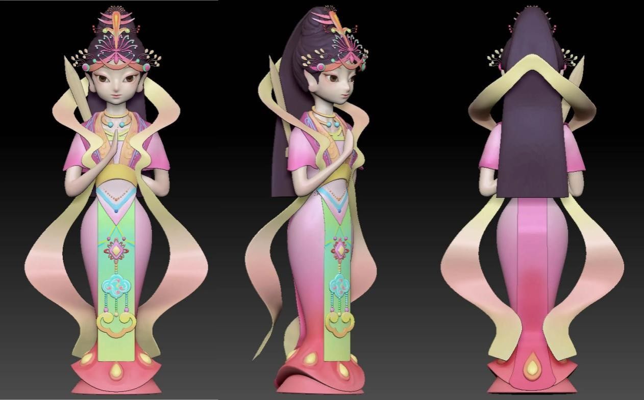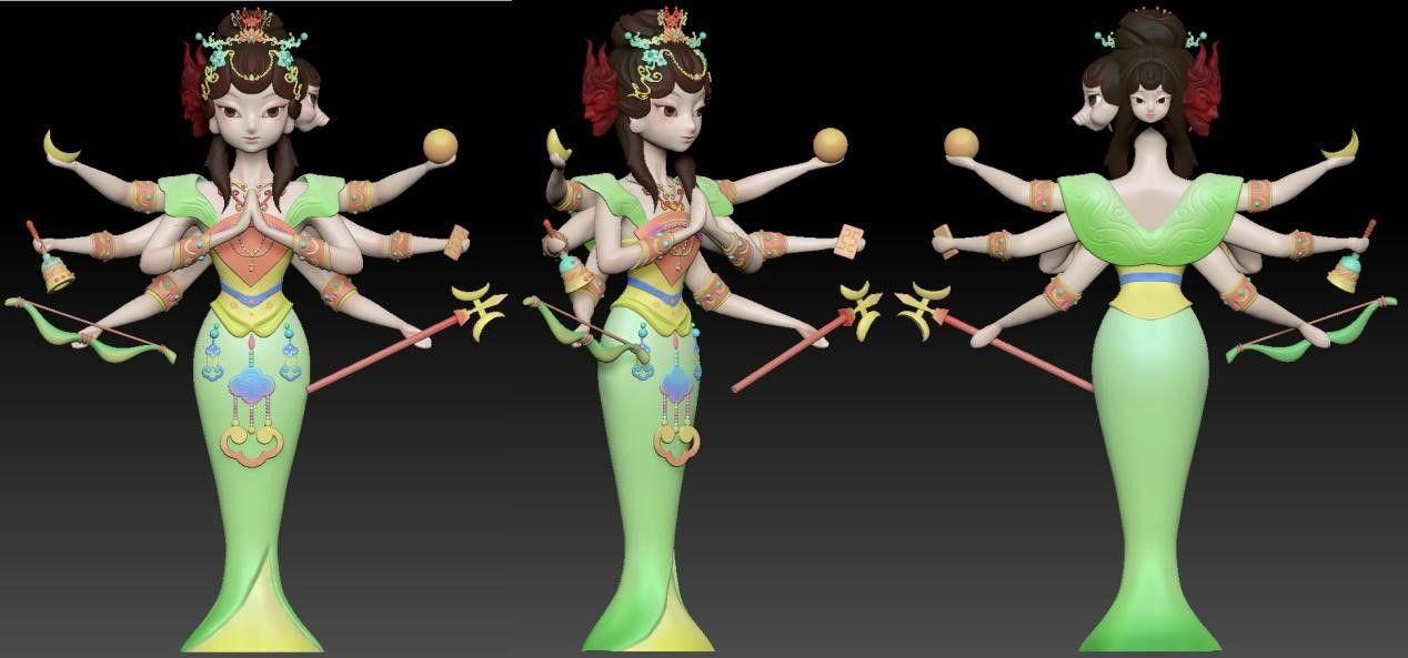 在设计制作人物视觉风格的时候,她们需要在保持山神原有形象的基调之下形成自我独特的风格,人物的整体姿势、四肢动作、表情细节都需要反复打磨。为此她们四处奔走调研,许多工厂打印3D模型都需要耗费大量的人力和物力,颜色稍出差池,就需要重新打印。最终,她们选择了自己手工上色。