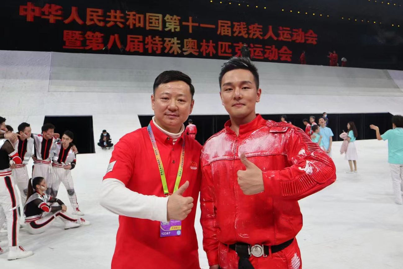 专业学习之外,宋绍强还积极参与社会活动,丰富实践经历。2021年6月,他报名成为全国第十一届残疾人运动会暨第八届特殊奥林匹克运动会开幕式演员,经过长达四个月的密集训练,他和180多名同学共同完成了《共享荣光》节目的演出,被评为“残特奥会优秀学生演员”。演出之余,宋绍强不忘从会展专业角度思考学习收获,“政府主导的大型展会,对于资源的调动、人力的安排以及节目的统筹效率都非常高,能在有限的时间内,对有限的资源进行合理分配并高效利用,是我需要不断学习的地方。”