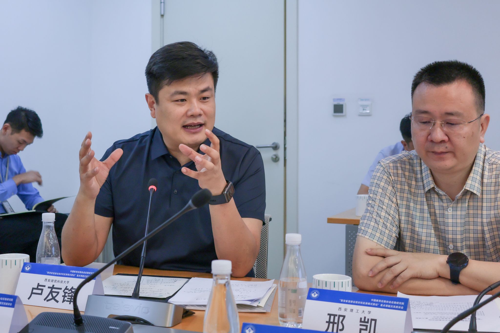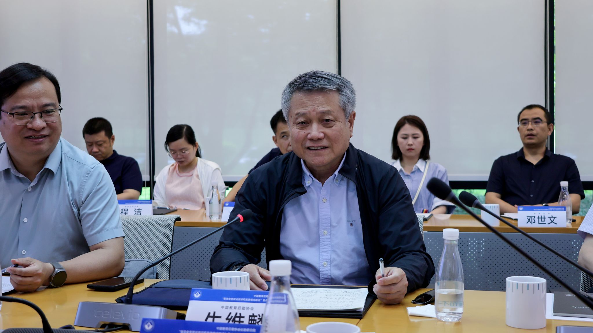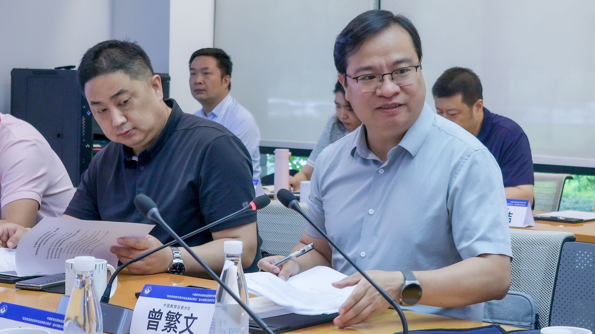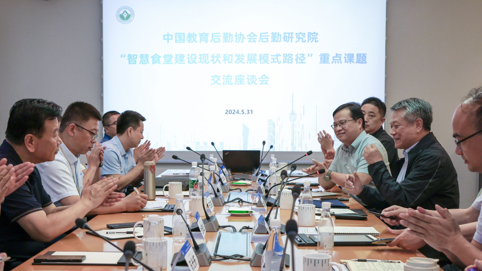 (图二)本次座谈会由中国教育后勤协会后勤研究院副院长曾繁文主持