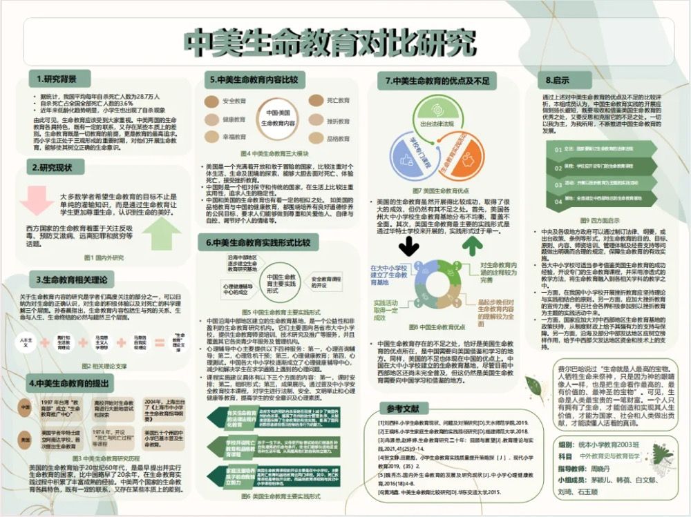 “《中外教育史与教育哲学》这门课程,不仅是历史性的方式和总结,对我而言更是时代教育精神的教化与形塑。这门课程前期以知识的讲授为主,而后期通过学术海报的制作,知识达到了由图示转变到知识的平衡,真正做到了学-研-产,同时通过这门课程我调整了我的知识结构,重塑了价值谱系,转化了研究视角的范式,形成了自身的教育观和儿童观,在后期成为一名老师的路上受益匪浅。”小学教育2020级学生林坚说。