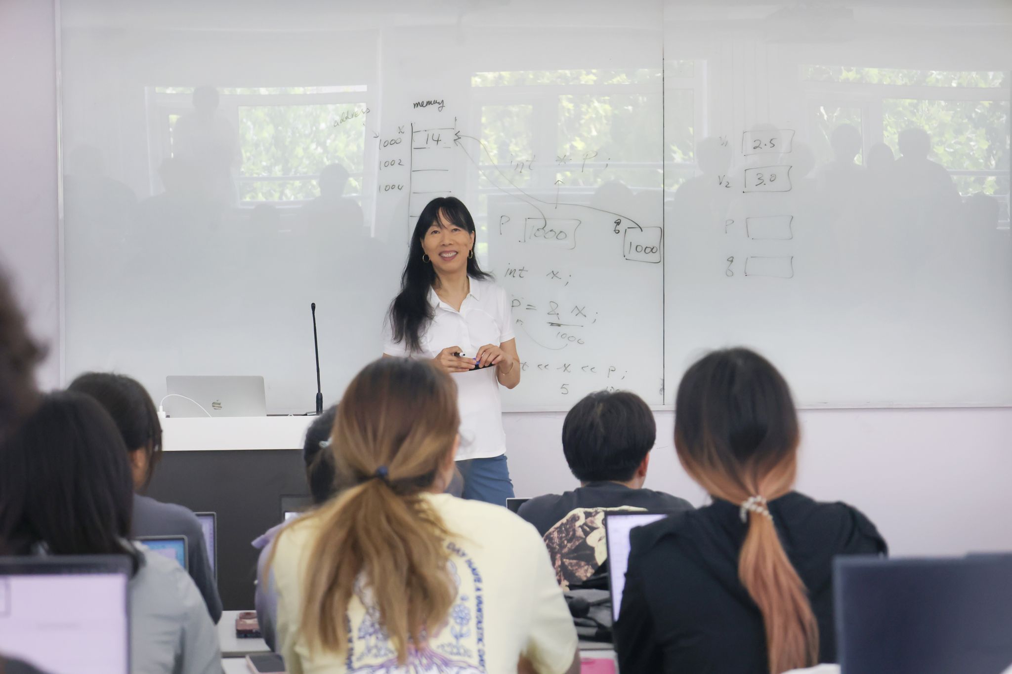 (图五)美国中田纳西州立大学李岑 (Cen Lee)教授正在为学生们讲授《Computer Science II》