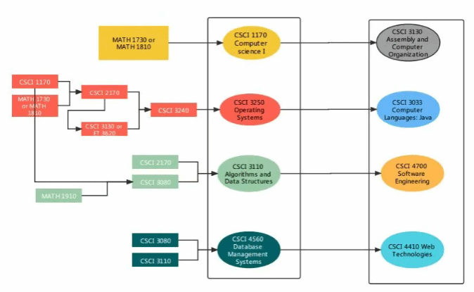 从大二起,学生们将逐步完成Ethics and Computing Technology(计算机伦理)、Computer Science I(计算机科学I)、Computer Science II(计算机科学II)、Algorithm and Data Structure (算法和数据结构)、Database Management Systems(数据库管理系统)等18门美方认定课程。在专业课授课方式上,中田纳西州立大学的老师们主要采用项目制教学,注重teaching hour(教学时间)与learning hour(学习时间)的平衡,并以feedback(学生反馈)作为教学主要机制,根据学生表现及时调整授课速度与内容,最大化保障学生不掉队。