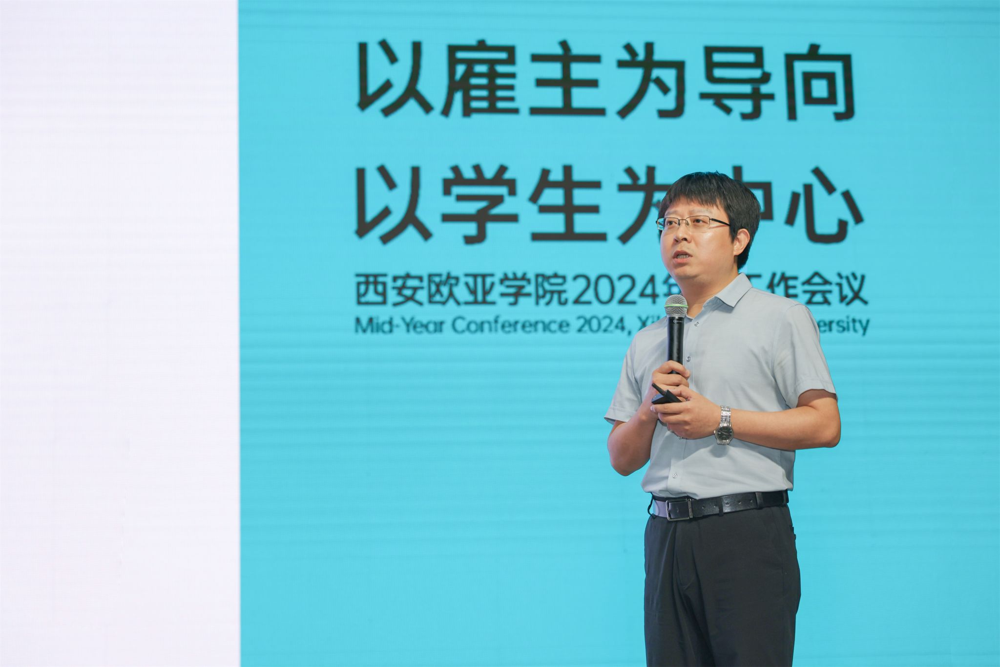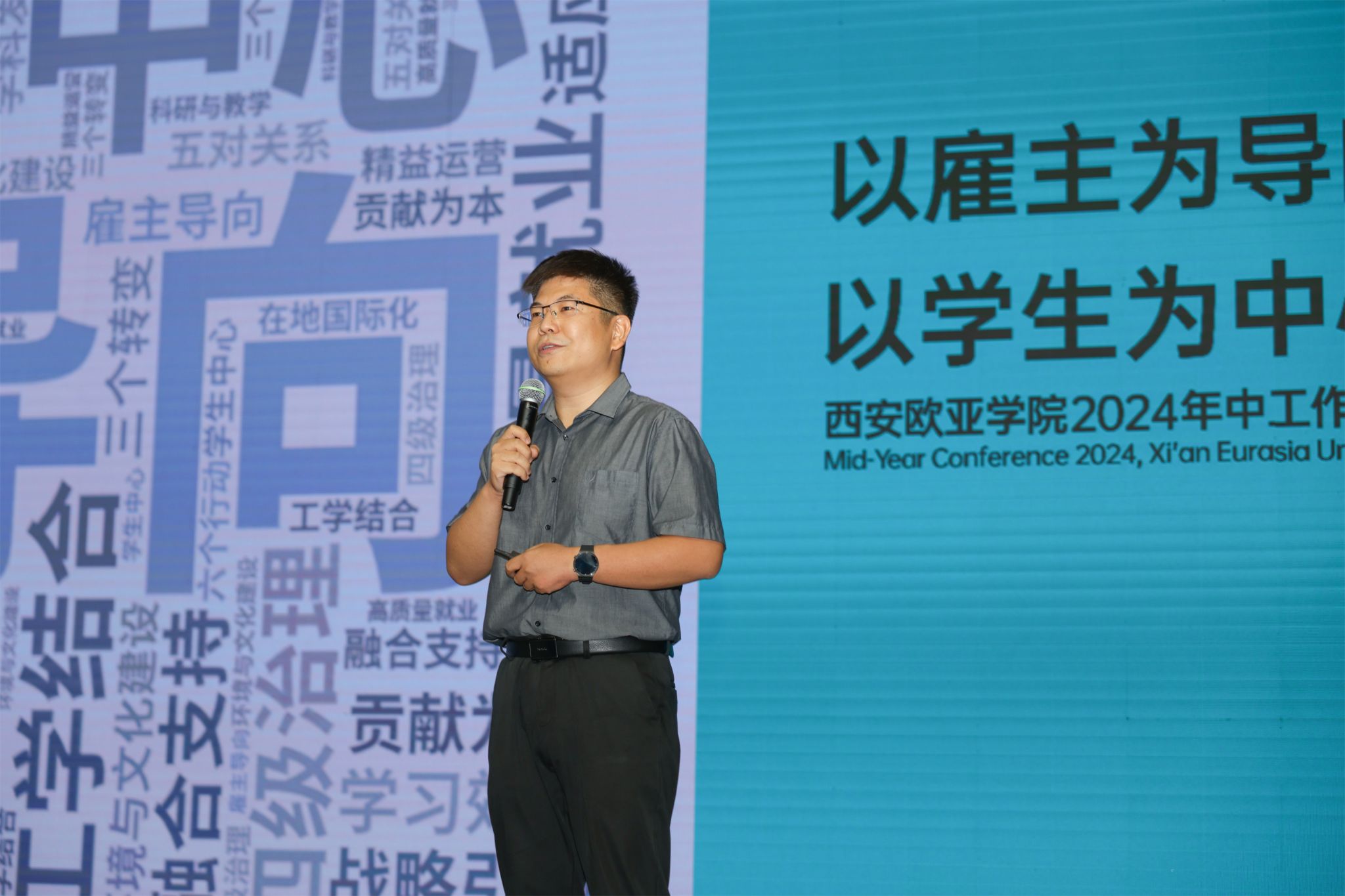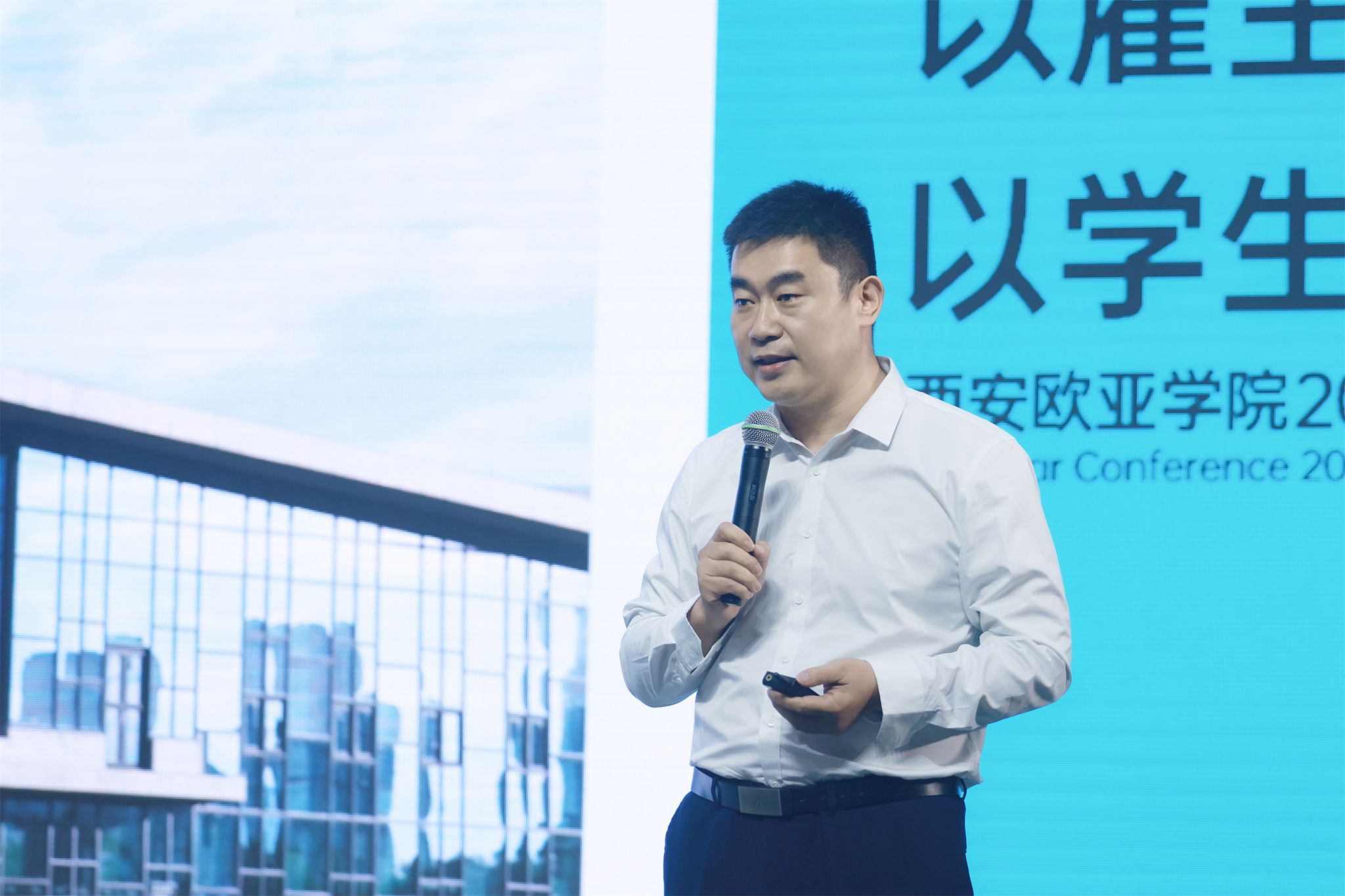人文教育学院院长助理张冉昕《应用型人才培养——系统思维视域下的设计与支持》、会计学院执行院长谢涛《以雇主为导向,以学生为中心——欧亚商科发展思考与行动》、信息工程学院教师胡红飞《向下扎根,向上生长—国际视野与在地行动》、职业教育学院教师邓博《与追光者结伴同行》的四场报告,围绕学校战略重点工作,聚焦于应用型人才培养、在地国际化等多个关键领域,结合分院、学科的特点和发展实际,从不同业务、不同领域进行了深入的思考,进一步诠释了多元协同育人的内涵和意义。