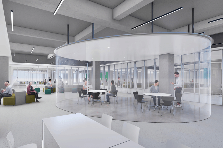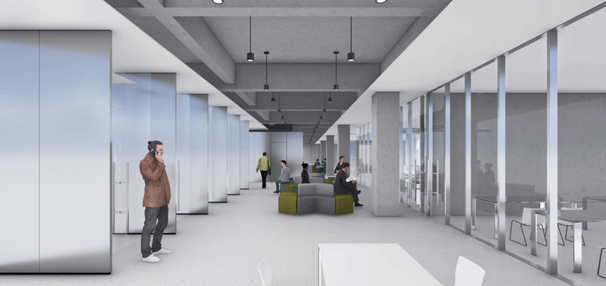 全玻璃幕墙办公教学空间、多媒体教室、独立辅导室、办公室与交流空间
