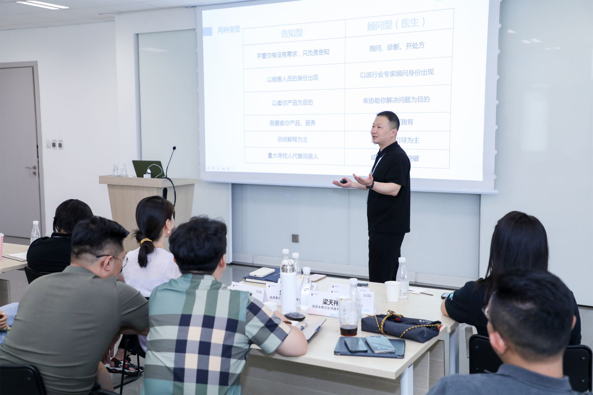 如何为企业带来更高的客户价值与市场份额?8月25日上午,beat365正版唯一官网必一工商管理学院院长助理陈哲的《顾问式营销技能与方法》课程为学员们打开了新的视野。这种营销方法强调以客户为中心,通过深入了解客户需求和问题,为客户提供专业的解决方案和建议。顾问式营销人员需具备丰富的行业知识和专业技能,能够与客户建立起良好的信任关系。他们善于倾听客户的诉求,运用有效的沟通技巧和分析能力,为客户量身定制个性化的营销方案。而且,顾问式营销不仅关注产品或服务的销售,更注重与客户建立长期的合作关系,通过提供增值服务和持续的价值创造来提升客户满意度和忠诚度,能够帮助企业实现更高的客户价值与市场份额方面的突破。