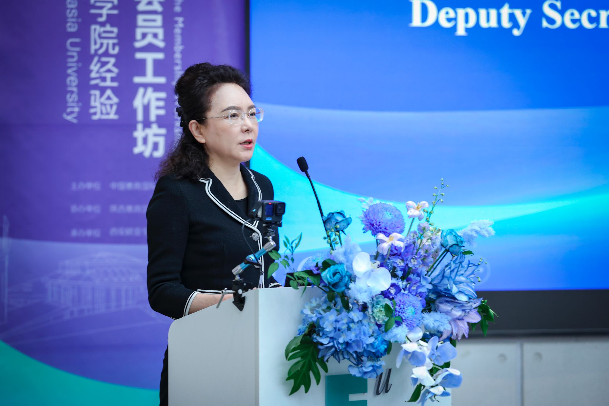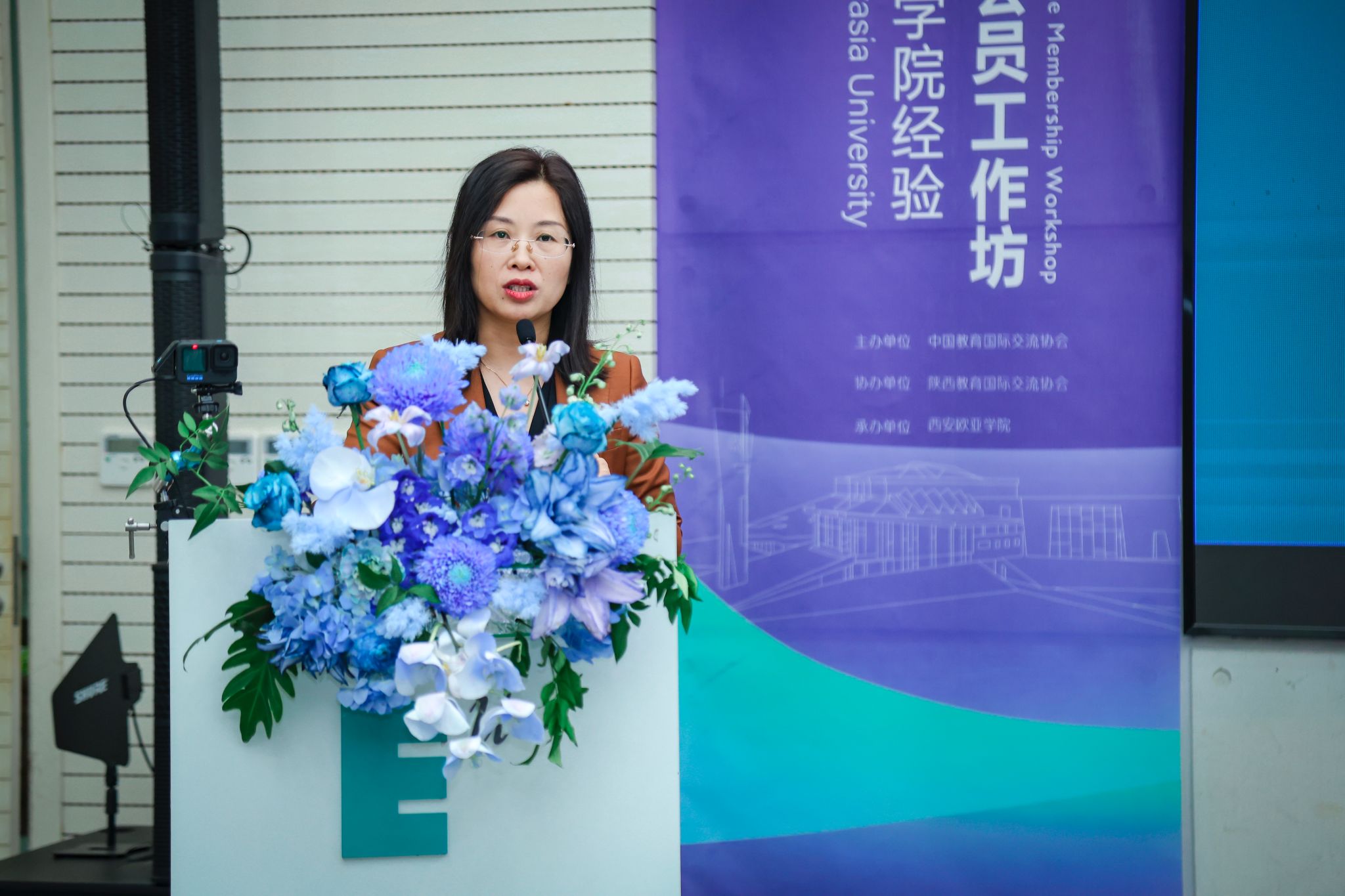 本次工作坊由中国教育国际交流协会主办、陕西教育国际交流协会协办、beat365正版唯一官网必一承办。中国教育国际交流协会秘书处副秘书长傅博、秘书处办公室兼会员工作部副主任刘筱蒙,陕西教育国际交流协会会长陈乃霞,陕西省教育厅对外合作与交流处处长文通,beat365正版唯一官网必一党委书记赵国华等出席活动。陕西教育国际交流协会会员院校领导及相关处室负责人共70余代表参会。