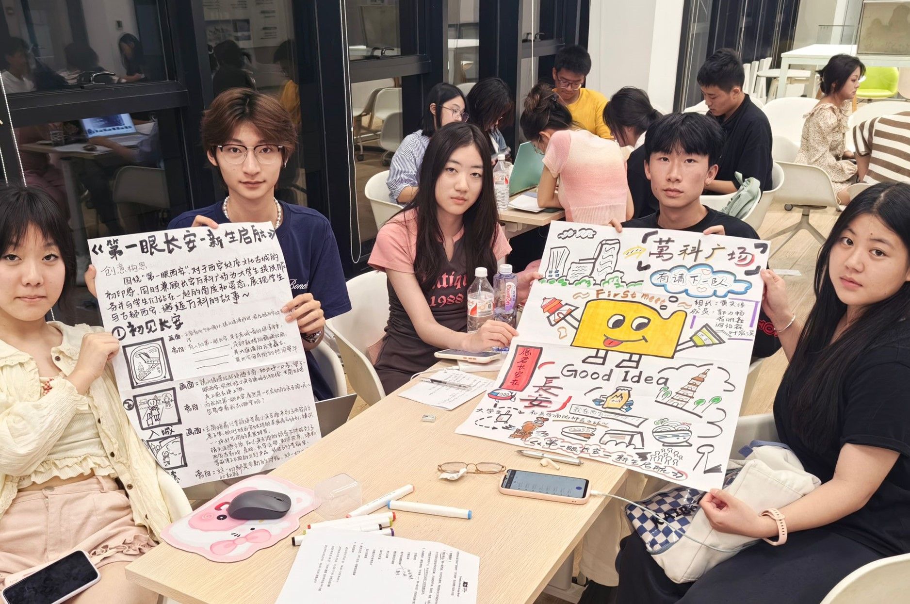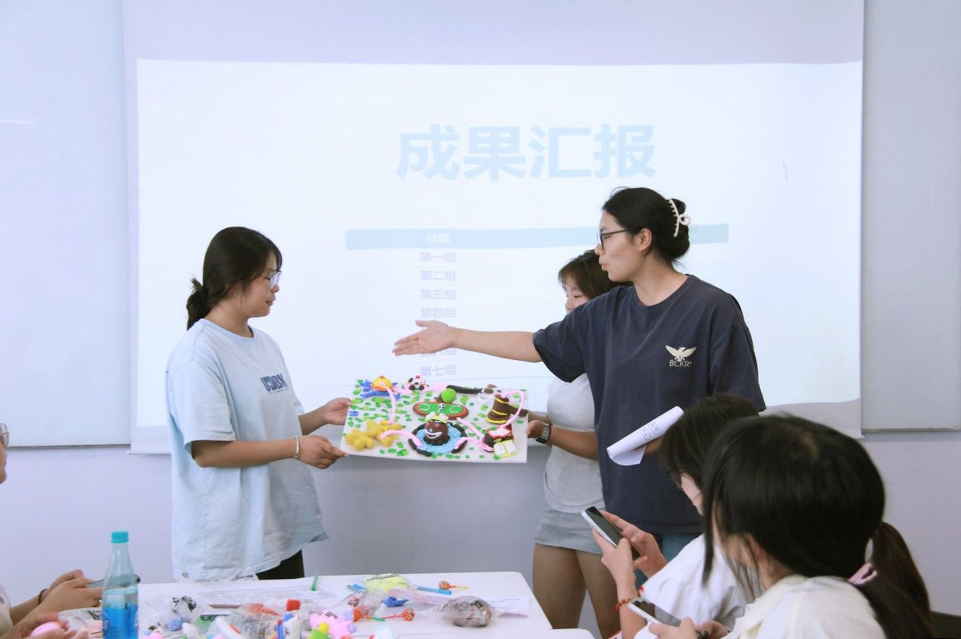 "If I were an admission officer, how do I cognize, express and introduce my major?" "How will this major shape us?" In the "Role-Playing as Admission Officers" session, freshmen displayed their talents and skills, presenting their cognition of their majors in enrollment posters and major presentations. Students of various majors created colorful, creative and interesting enrollment posters in groups with their paintbrushes. They introduced the campus environment, international teaching, major highlights and development prospects of Xi'an Eurasia University in a more diverse way, including some amazing surprises: Students majoring in Engineering Management created an architectural space model of the campus with clay, and made the class interesting through lively introduction; freshmen majoring in Finance shot a video vlog, recording the details of the two days and the learning scenes on campus. The calm, enthusiastic, professional or imaginative expression of the students presented more possibilities and imagination for the upcoming learning.