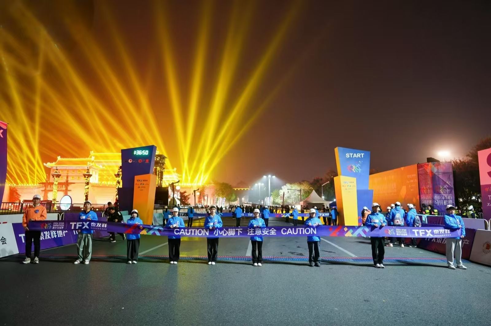 在马拉松起点永宁门赛段与终点大明宫遗址公园赛段,志愿者们早早地开始了忙碌的准备工作。布置赛道、引导选手、提供补给……每一个环节都一丝不苟,他们用自己的热情和专业,为每一位参赛选手提供最贴心的服务,确保每一位跑者都能享受到最佳的赛事体验。