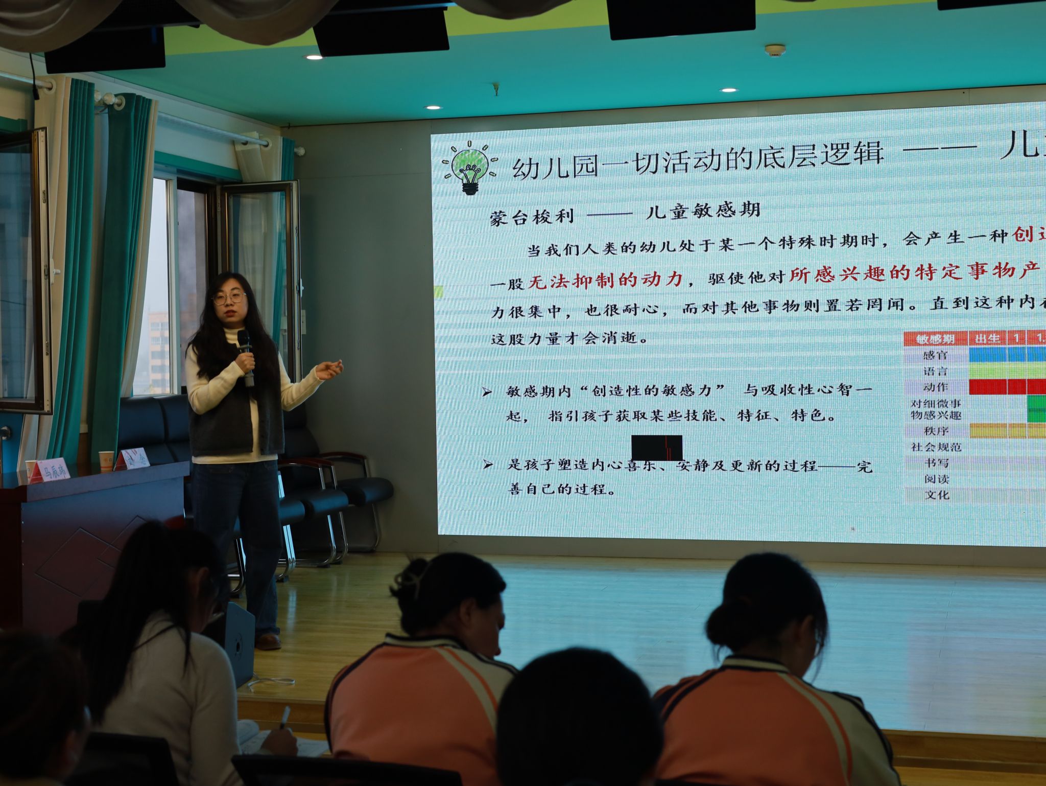 吕梦瑶老师以“什么是幼儿园课程?”为出发点,引领清涧县学员对园本课程体系建设思考。她以园本课程类型为切入点,深入探讨如何整合、建设幼儿园课程,向学员们介绍了幼儿园课程的常见类型、如何将课程主题融入幼儿园安全教育以及一日生活的组织管理和途径方法,讨论和分享了课程建构的实用策略,启发学员将田园课程、红色文化、本土自然和社会资源,幼儿兴趣等融入课程主题搭建课程,强调在课程建设时不要让课程研究仅仅成为研究文本,忘却了幼儿才是幼儿园课程的主体。