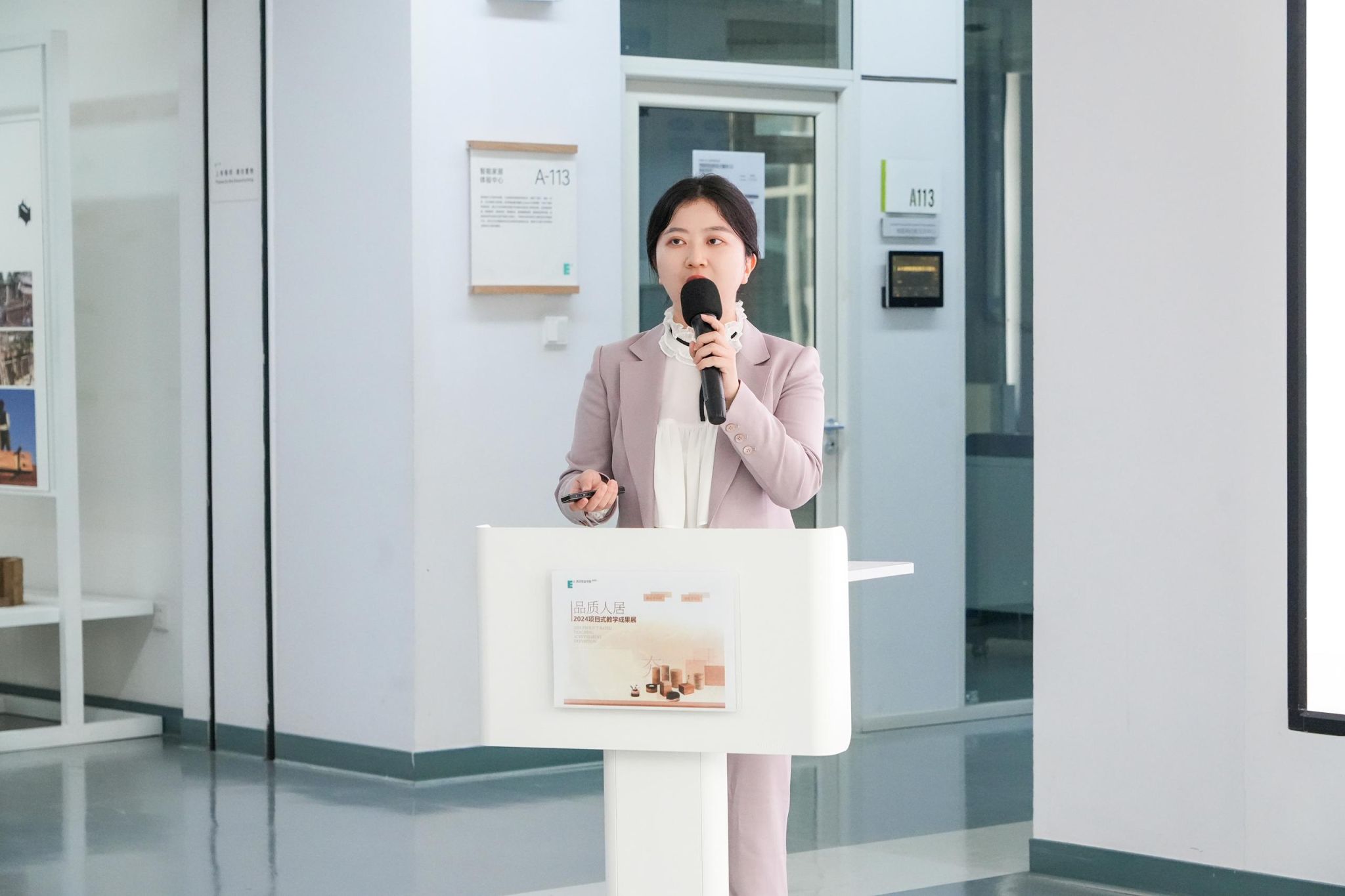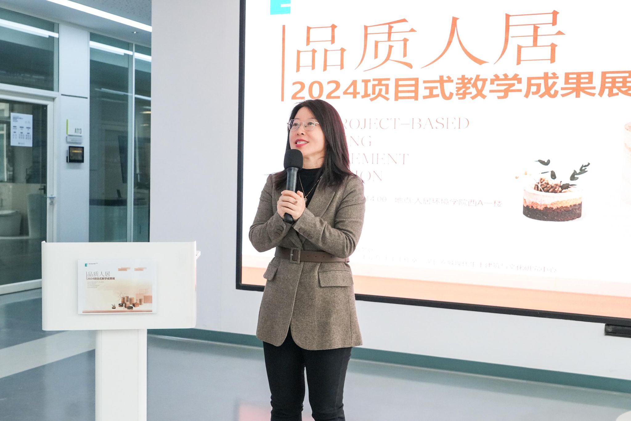 (图二) 开幕式现场,人居环境学院副院长殷颖迪介绍项目概况