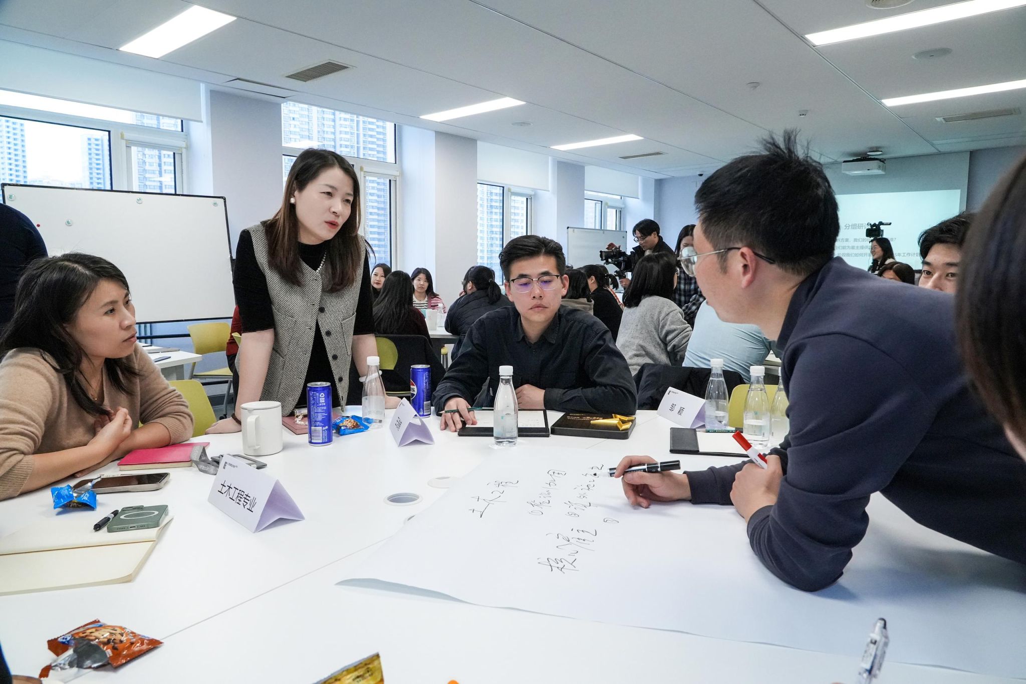 会上,各专业负责人分别以专业新定位、服务新雇主和项目好案例等角度进行主题分享,并与企业嘉宾一道围绕“新方向背景下建筑专业的核心雇主是谁?”“雇主的核心需求是什么?”“学院下一阶段工作重点”等议题展开分组讨论。通过与行业的链接,不仅为下一步人居校企合作提供有益参考,更为学院未来发展方向指明道路。