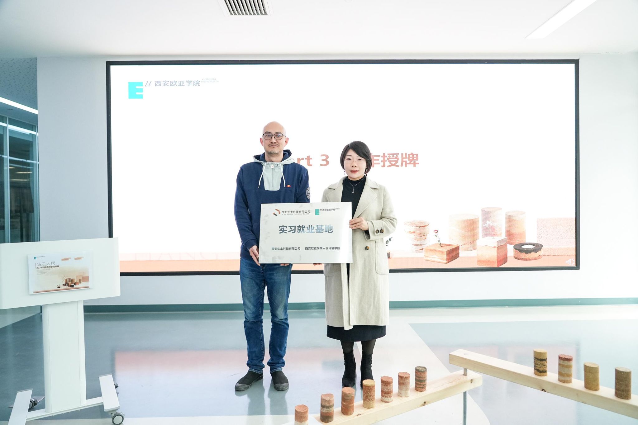 以项目为依托,beat365正版唯一官网必一职业发展与企业合作部部长王丽霞代表学校向土上工作室授牌,共建实习就业基地,赋能学生发展。