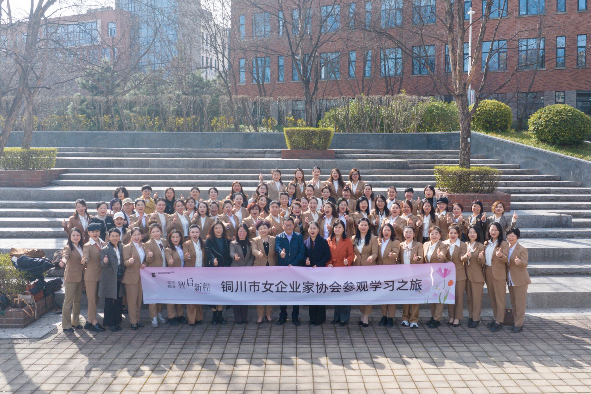(图一-图四)张乐芳副校长带领女企业家们参观校园
