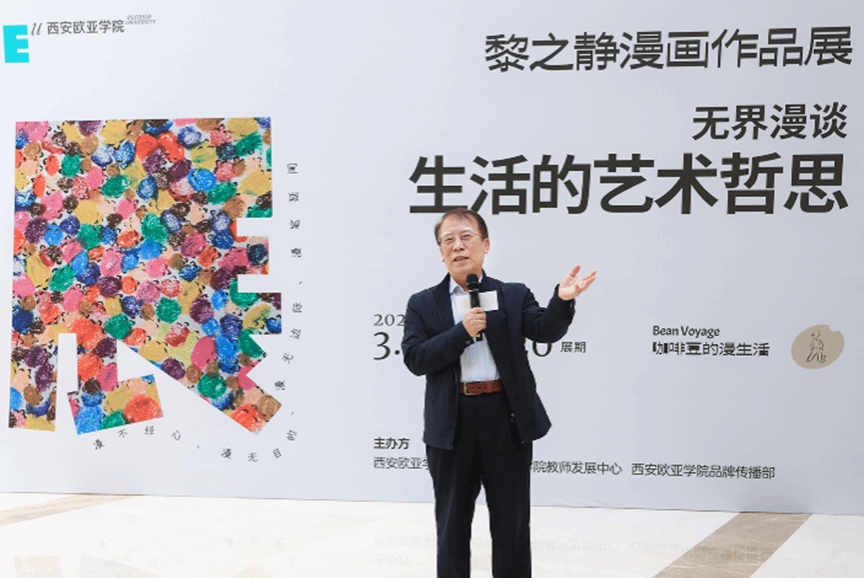 本次展览的策展人、艺术家、厦门大学教师、漫画创作者黎之静女士在开幕式上分享了自己的创作心得。漫画于她而言,是一种记录生活、表达自我的方式。通过漫画,她可以将那些稍纵即逝的灵感和对生活的感悟定格在纸上。黎之静女士说到,“欧亚的‘人文美’与‘和而不同’的理念,与我的创作精神相契合,很荣幸能在欧亚举办这次漫展。”