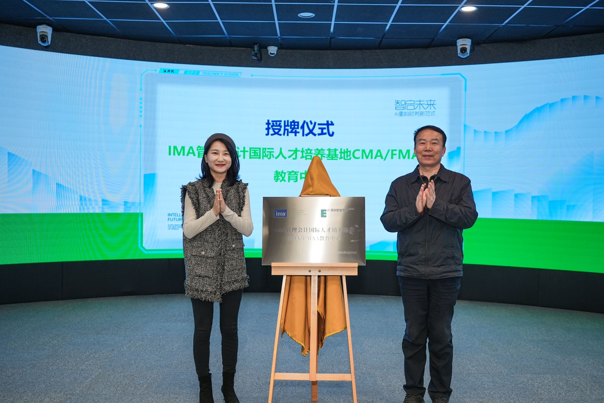 (图二)田高良与胡惟悦共同为beat365正版唯一官网必一“IMA管理会计国际人才培养基地CMA/FMAA 教育中心”揭牌