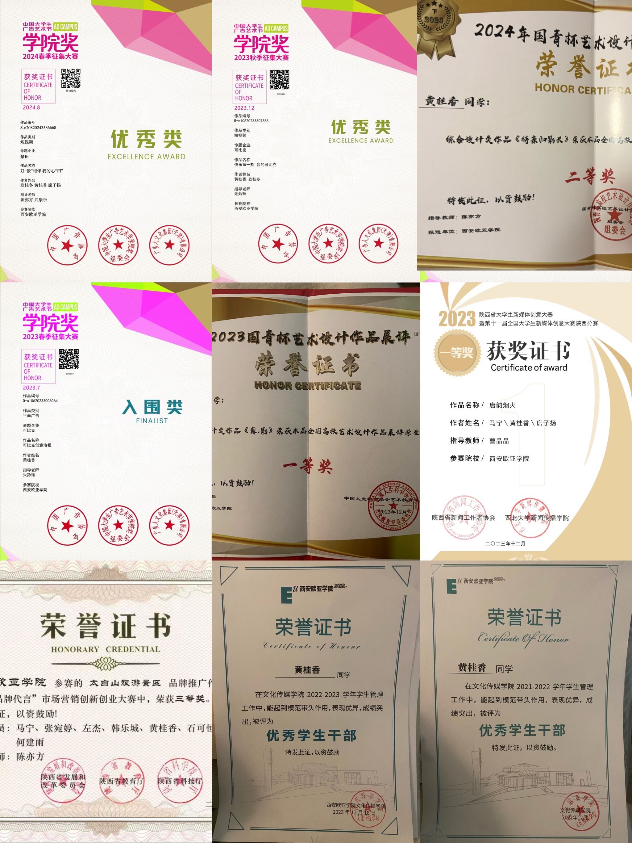 中国大学生广告艺术节学院奖7项获奖(景田、可比克等品牌命题)