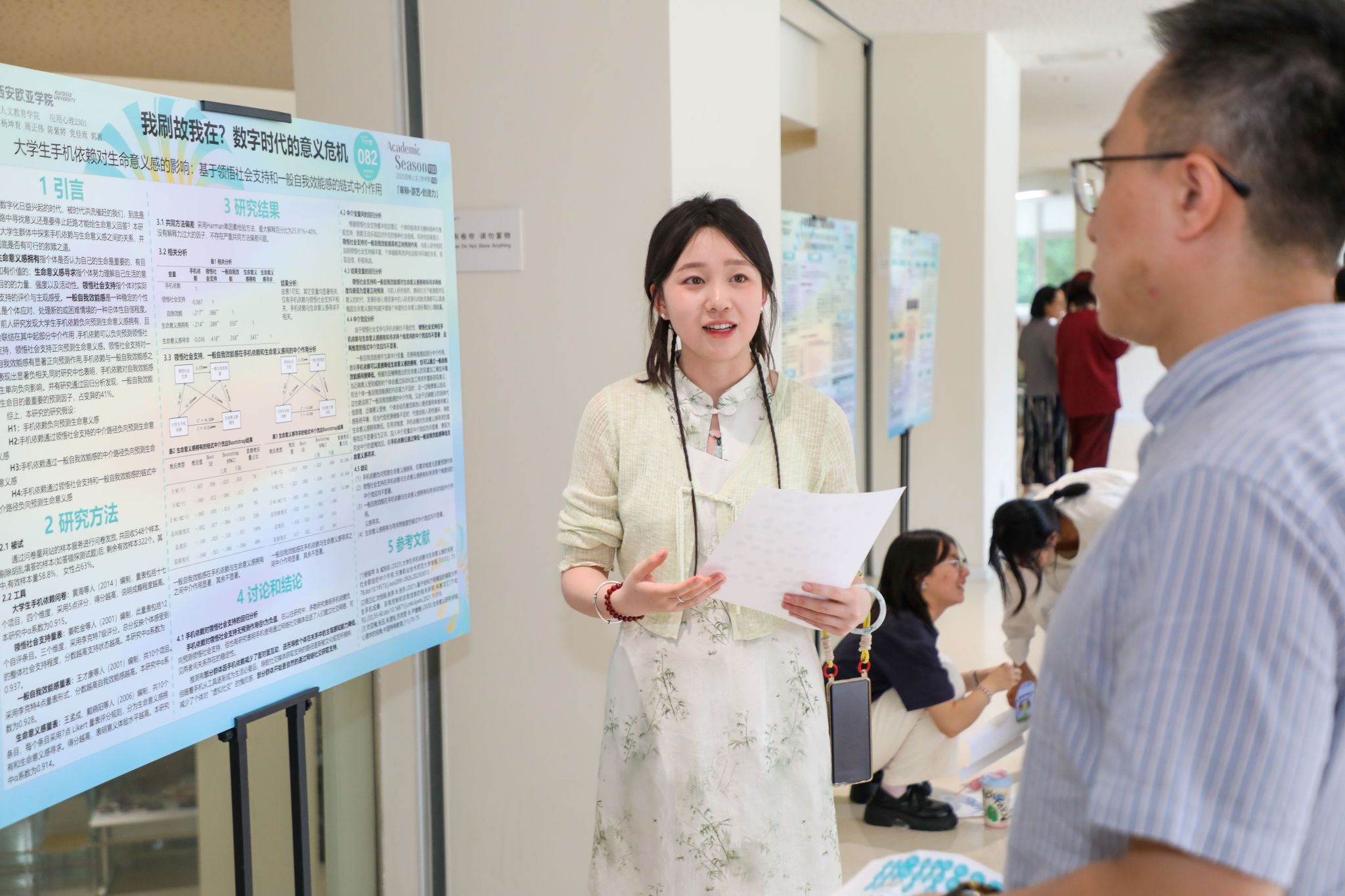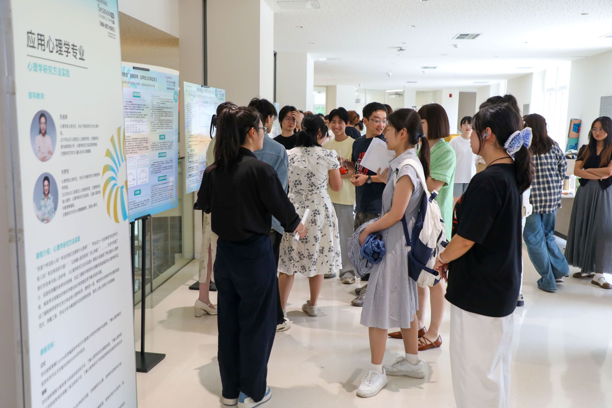 6月19日下午,以“理解学习,看见学生”为主题的心理学研究成果展的各个展位都吸引了许多师生驻足观看。在本学期,人文教育学院应用心理学专业学生在老师的指导下,聚焦“学生的心理健康与学习行为”,展开调研和实验研究,并通过学术海报和期刊两种形式分享项目式学习的成果。学生们以专业的视角分析解读身边具体的人和事,关注学生群体在学习过程中可能面临的问题或困境,积极寻求解决的思路方案。他们每个人都是“平凡世界中的一束光”,并将在未来汇聚成为托举儿童幸福成长的力量。