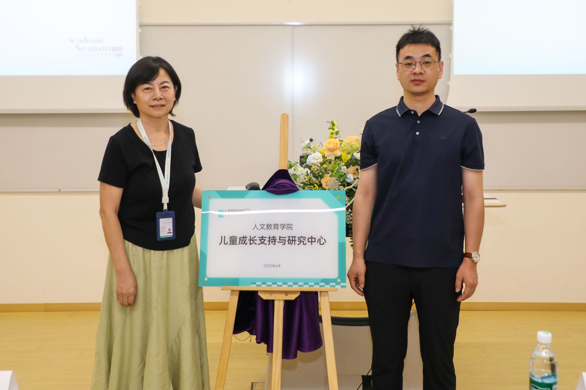 人文教育学院首席专家李文玲教授和深圳沐心田教育集团总经理王威先生共同为中心揭牌