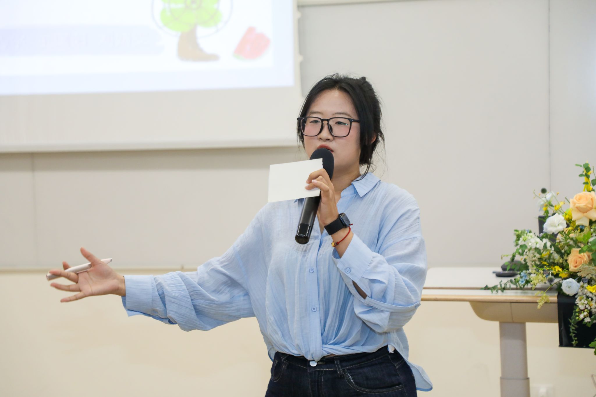 随后,应用心理学专业学生通过学术答辩和课程路演两种形式,展现了在《普通心理学》、《心理学研究方法实践》和《心理学史》课程学习中的思考与研究成果。大一学生卓虹玲及其团队围绕一次“失败”的实验设计展开反思,领悟到学术探索的重要性。大二学生邵雪艳探讨了成就目标定向在专业认同与学习投入之间的中介作用,特别是追求能力增长和学业成功的积极动机在提升学习投入方面的重要地位。学生朱一诺及其团队借助心理学实验,探究了怀旧和未来自我连续性对跨期决策的影响。杜明桐则以死亡这一话题切入,讲述了“恐惧管理理论”及其对生命教育的启示。
