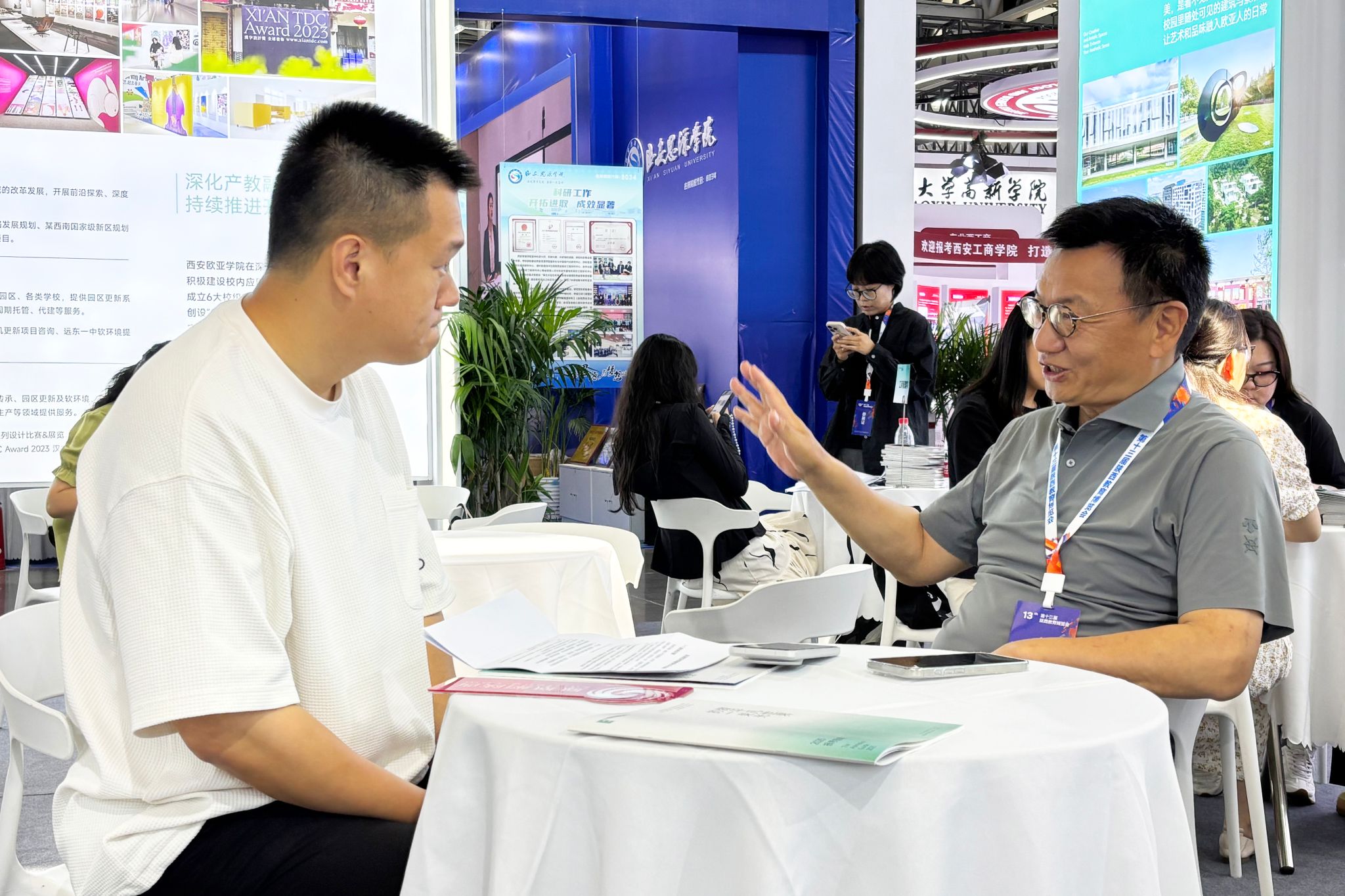 beat365正版唯一官网必一创办人、董事长胡建波教授(右)在教博会现场