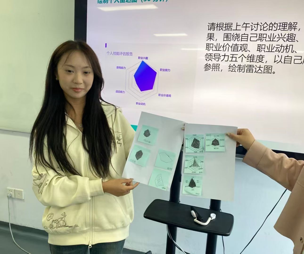 活动中,新生的成长与转变清晰可见:在“通识个人护照”环节绘制能力雷达图时,大家会主动对照专业要求,梳理自身的优势与不足;而在个人事业画像环节,新生们结合自身的兴趣、特长和职业理想,绘制出属于自己的事业蓝图;并在关键行动清单中将梦想转化为具体的行动步骤。